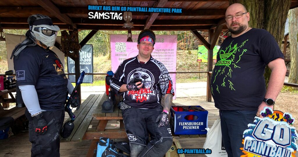 Paintball ist ein Outdoor-Sport — auch im Regen. Bei Unwetter oder Blitz pausieren wir kurz in der Lounge, danach geht’s weiter. Wir haben in 30 Jahren gelernt: Regen macht Paintball oft noch epischer.