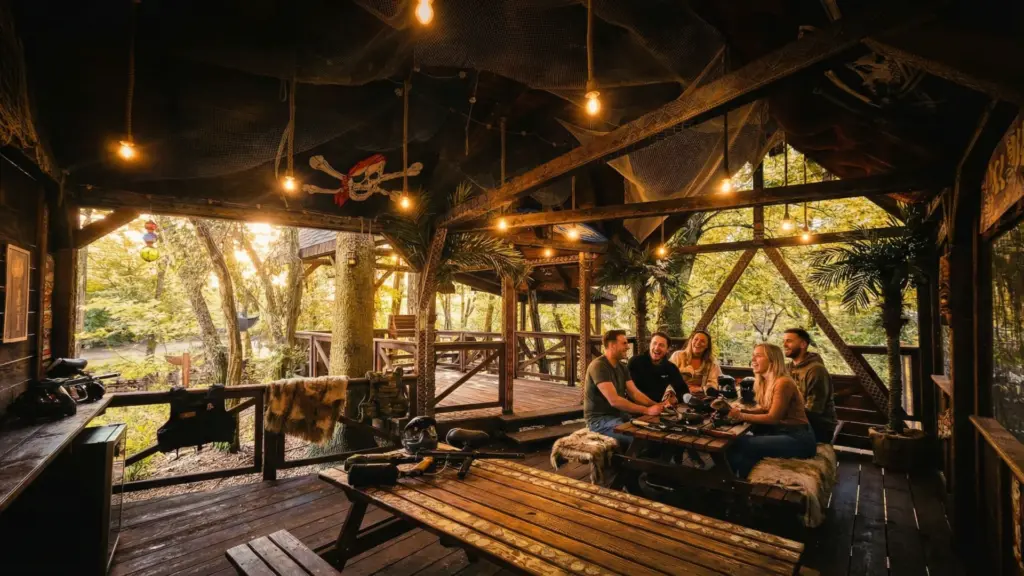 Kostenloser Parkplatz direkt am Park. Empfang, Anmeldung, Ausrüstung erhalten — alles entspannt organisiert.