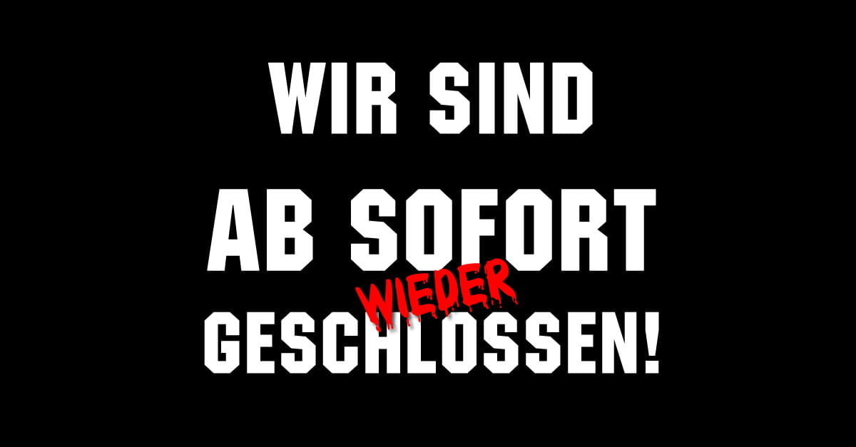 Hallo liebe Gäste, Freunde und Fans, wir sind ab sofort wieder geschlossen. Auf Grund der neuen Verordnung müssen wir leider wieder den Betrieb einstellen. Es