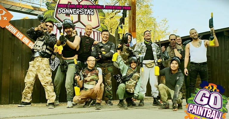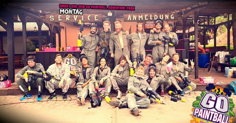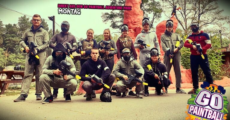 Hallo liebe Gäste, auch am Montag war Action im GO PAINTBALL ADVENTURE PARK angesagt. Hier haben wir für euch ein Gruppenbild vor dem Spiel und