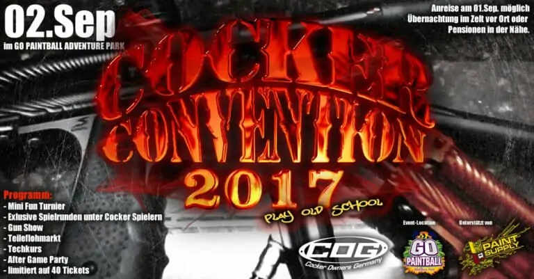 Hallo liebe Gäste, am 02. September 2017 ist bei uns im GO PAINTBALL ADVENTURE PARK die Cocker Convention 2017. Das Mini-Fun-Turnier wird exklusiv unter Cocker