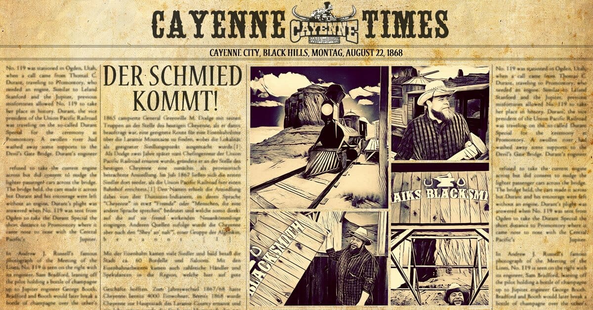 Wir haben uns daher die Zeitung Cayenne Times ausgedacht, die aus Cayenne und von den Bauarbeiten an der Bahnstrecke erzählt. Wir versuchen auf spielerische Art und Weise die reellen Probleme in die Zeit des Wilden Westen zu übersetzen. Aber fangen wir lieber von vorne an…