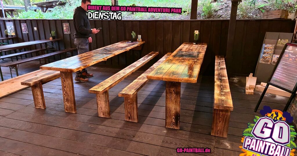 🪑 Aus dem Keller ans Licht: Die ersten 2 von 5 neuen Tischen sind da – und ersetzen nach und nach die alten Bierzeltgarnituren. Mehr Platz für eure Burger & Pizzen und ein besonderer Hingucker: