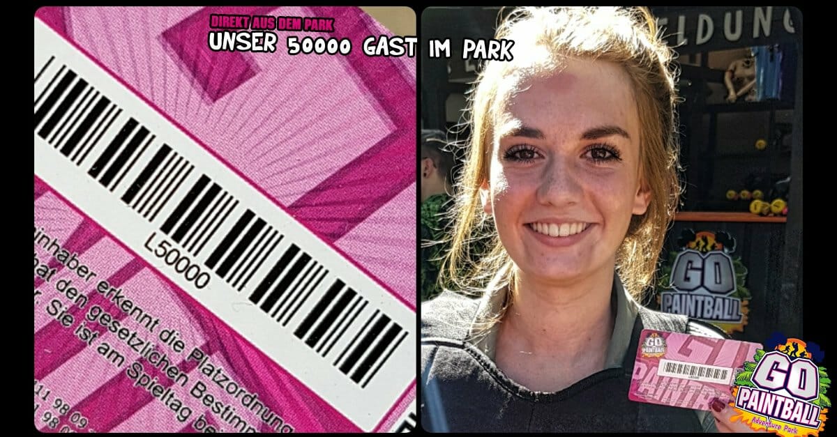 Die hübsche Luisa ist unser 50.000 Besucher im GO PAINTBALL ADVENTURE PARK. Natürlich spielt sie den ganzen Tag für kostenlos und erhält für sich und ihr Team eine Flasche Sekt auf das Haus. Wir bedanken uns an dieser Stelle auch bei allen anderen 49.999 Gästen die uns in den letzten Jahren so zahlreich besucht haben. Wir werden uns bemühen und weiterhin hart daran arbeiten für euch eine Reise wert zu sein. Das Team von GO PAINTBALL sagt danke und bis bald im Park…