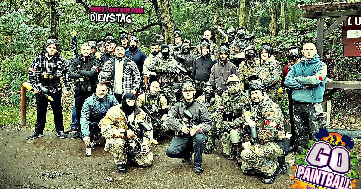 unsere lustige Gruppe am Dienstag. Wir hoffen, dass ihr einen schönen Tag bei uns im Park hattet. Wir bedanken uns für euren Besuch und wünschen euch eine angenehme Heimreise. Bis bald im GO PAINTBALL ADVENTURE PARK!