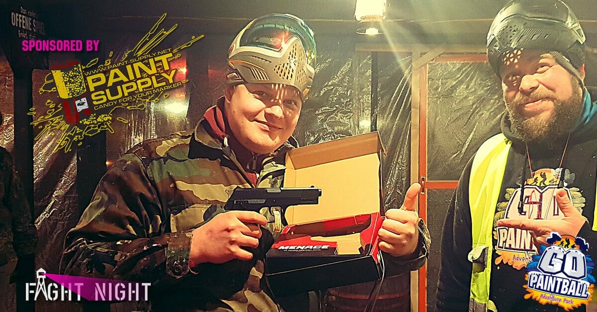 unser stolzer Sieger mit seiner neuen GI MENACE Pistole gesponsort von PAINT -SUPPLY, dem Paintball Shop in Berlin. Die Aufgabe war sich in einem Western Duell gegen alle Gegner sich im Knock Out Verfahren durchzusetzen. Wir gratulieren und wünschen viel Spaß mit dem neuen Männer-Spielzeug.