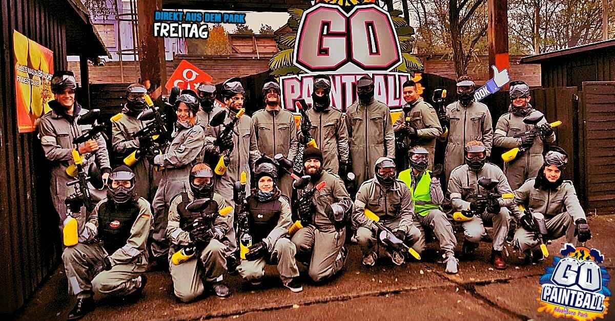es ist Freitag und wir spielen Paintball im GO PAINTBALL ADVENTURE PARK. So kann man die stressige Arbeitswoche ausklingen lassen. Das Team sagt anke für euren Besuch und verabschiedet sich mit diesem schönen Gruppenfoto von euch… Bis bald