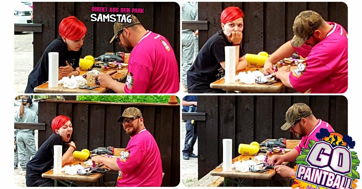 Das nennen wir mal ausdauernden Tech-Service. Shejo repariert geduldig einen Gastmarkierer…