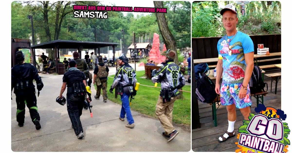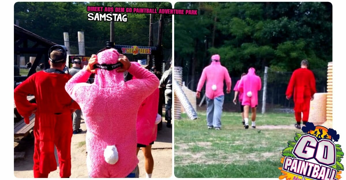 ohh man war das wieder ein heißer Tag im GO PAINTBALL ADVENTURE PARK. Trotz gefühlter einer Schrillionen Grad war der Park wieder sehr gut besucht. Wer echte/r Paintballer/in ist, kann vom Spaß nicht abgehalten werden. Unser Respekt war euch sicher, denn dem Team war schon beim zugucken heiß. Auch auf den armen Kompressoren konnte man sich zwischenzeitlich ein leckeres Steak braten, da auch ihnen diese Hitze zugesetzt hatte. Trotzdem hatten sich wieder diverse Hasen in Pink und Krabben in Rot in den Park verirrt, die unbedingt „schwitzen“ wollten. Nach erfolgreich bestandener Prüfung wünschen wir euch einen guten Start in die Ehe und nach dieser Hasenjagd wird der Rest wohl ein Kinderspiel. Also viel Glück für die Zukunft.