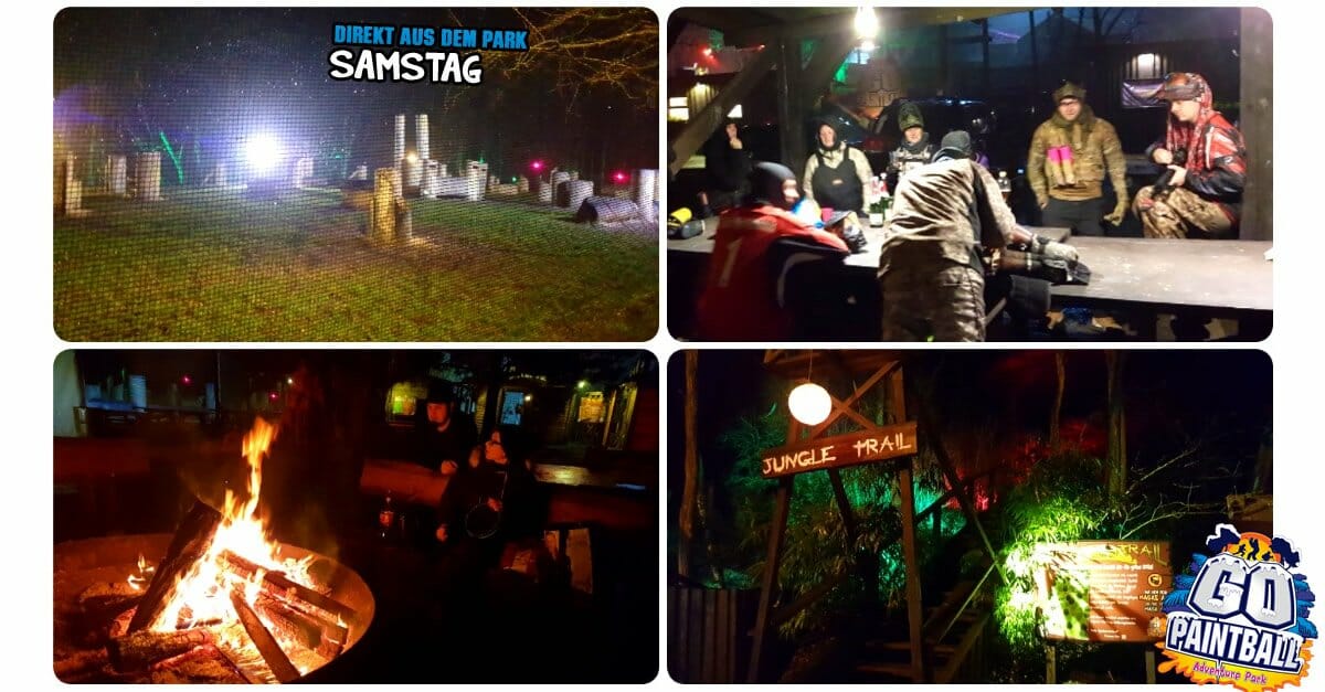 Nach Einbruch der Dunkelheit wurde der Park bunt beleuchtet und steht voll im Zeichen der FIGHT NIGHT. Paintball bei Nacht ist angesagt…