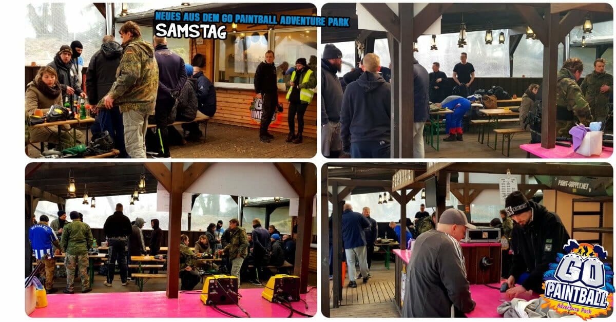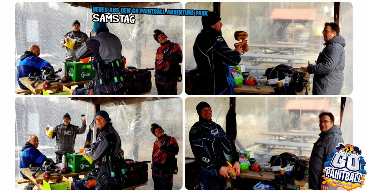 trotz gestrigem Schneefall ist der GO PAINTBALL ADVENTURE PARK davon zum Glück verschont geblieben. Die Sonne scheint und unsere Gäste haben trotz unter Null Grad Spaß. Das Lagerfeuer brennt und die Heizungen laufen auf hochtouren, um sich während der Spielpausen aufzuwärmen und einen leckeren GO BURGER zu genießen. Natürlich gibt es für euch wieder ein paar Fotos vom Tag.