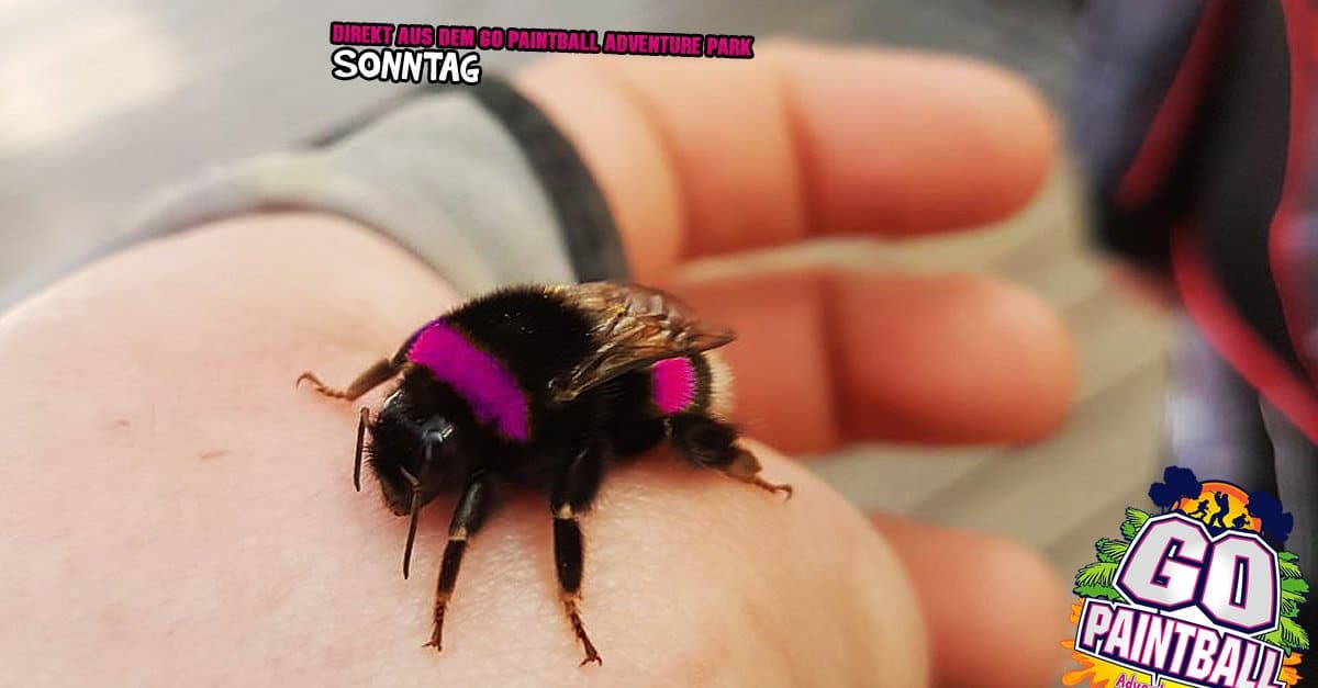der Sonntag wird bunt. Wir melden frische Farbe in der Luft und ausgelassene Stimmung im GO PAINTBALL ADVENTURE PARK. Von dieser guten Laune hat sich auch die erste Hummel anlocken lassen. Wir stellen vor die GO HUMMEL. Dafür gibt es auch erst einmal eine frische Fritz Cola im GO IMBISS. Wenn noch Platz im Bauch ist macht Klaus unsere Küchenchef auch noch einen dem Farbkleid der Hummel passenden GO BURGER. Wir wünschen euch weiterhin viel Spaß im Park. Wir sagen Danke für euren Besuch…
