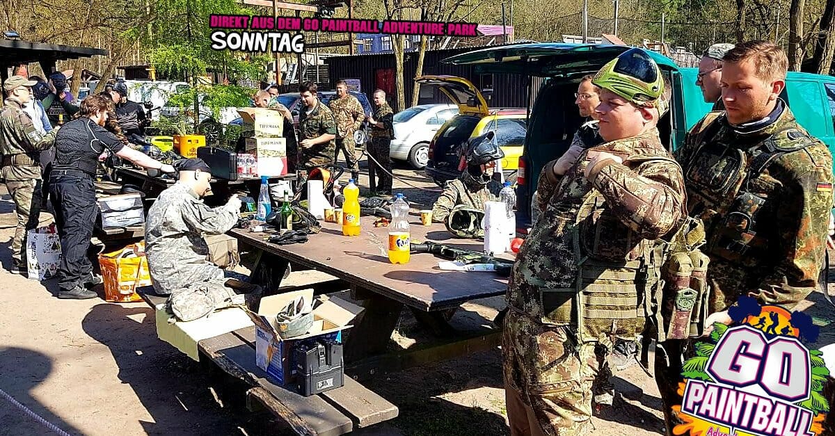 auch am Sonntag ist wieder Paintball-Action im GO PAINTBALL ADVENTURE PARK angesagt. Herrliche Temperaturen haben wieder unzählige Gäste in den Park gezogen, um mit Freunden ein wenig Zeit zu verbringen und dem Einen oder Anderen ein paar Kugeln über den Pelz zu brennen. Aber alles nur Spaß, die Herren und Damen möchten ja nur Spielen.