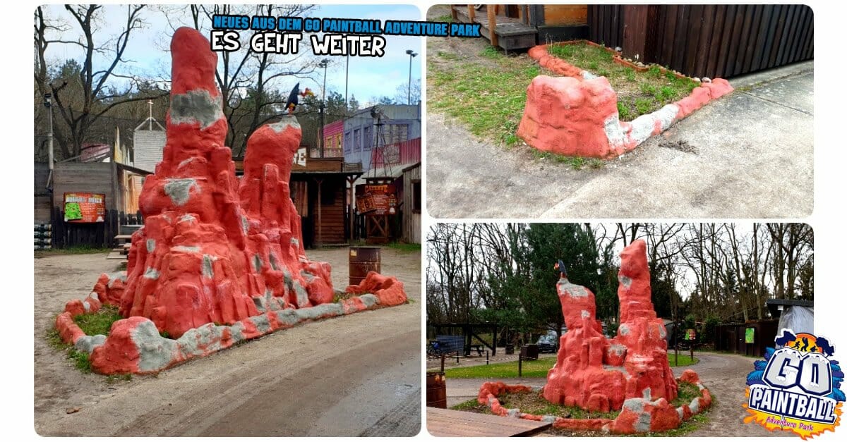 Der Felsen wurde neu verputzt und wird dann gestrichen, damit er wieder schon rot leuchtet. Die Vorbereitung für „Diggin Dirt“ wurden begonnen. Morgen kommt der Bagger und bereitet alles für den Neubau vor. Trotz Regen wurden die ersten Teile von Steven vorbereitet. Das nennen wir mal einen Einsatz.