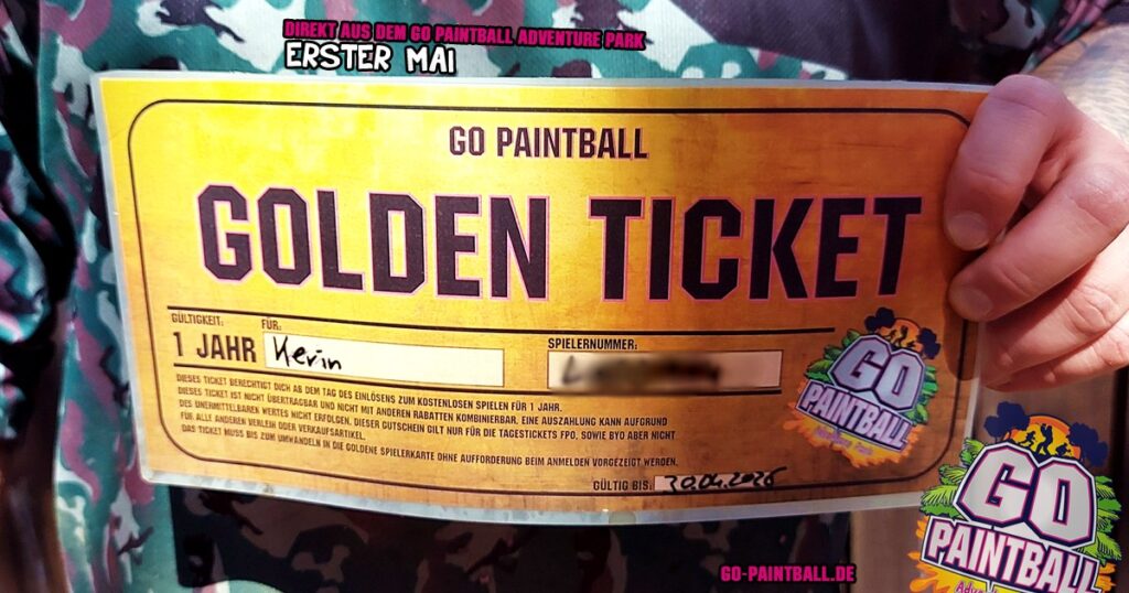Mitten im Gefecht, zwischen Staub, Farbe und Deckung – zack! – hält Kevin plötzlich das heiß begehrte Ticket in den Händen. Sein Preis? Ein ganzes Jahr Paintball ohne Tagesgebühr! 🎯