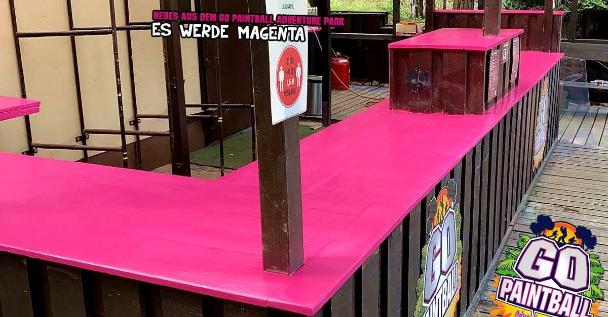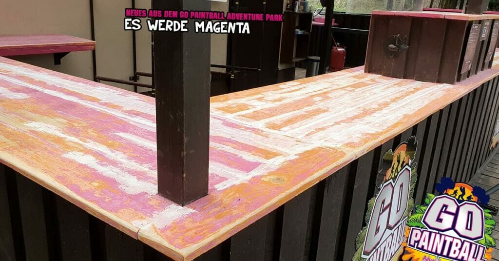 wir haben es ja mit Magenta, Fuchsia und ja auch Pink. Die Farbe stammt ursprünglich aus dem alten GO Paintball Logo und wurde beim Redesign übernommen. Natürlich taucht daher dieser Farbton bei uns überall wieder auf, so auch am Tresen.