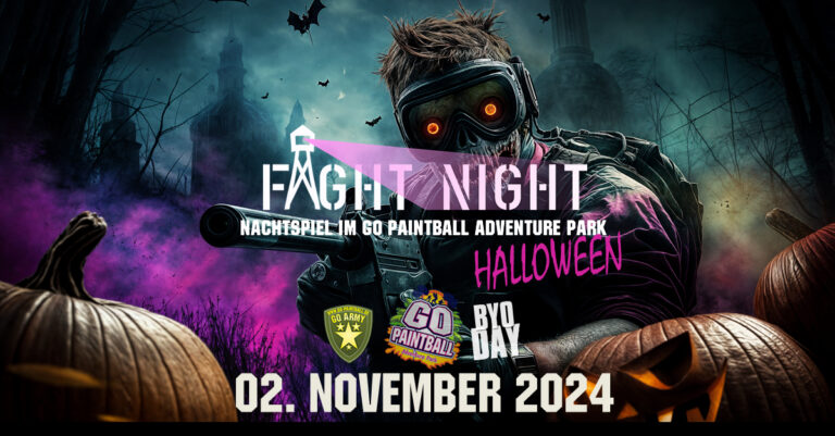 Hallo liebe Gäste,es wird früher dunkel, aber das ist am 28.10.2023 im Go Paintball Adventure Park kein Problem. Es ist wieder Zeit für die FIGHT