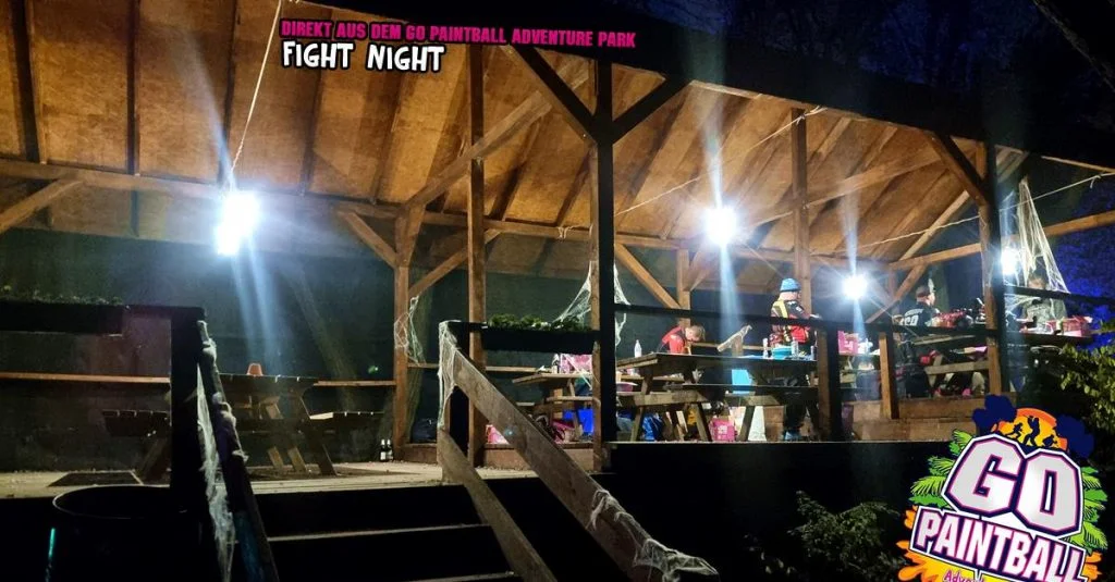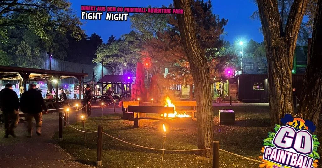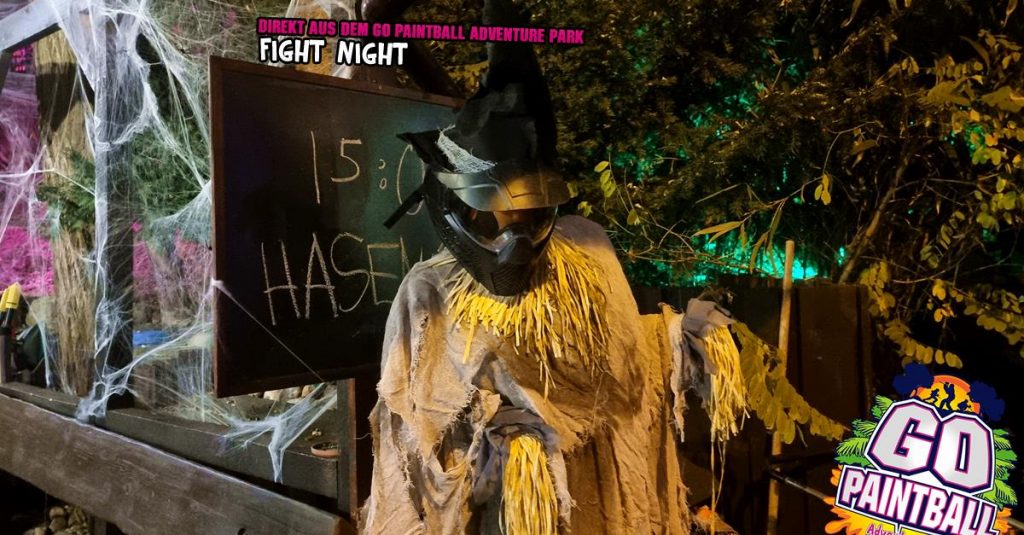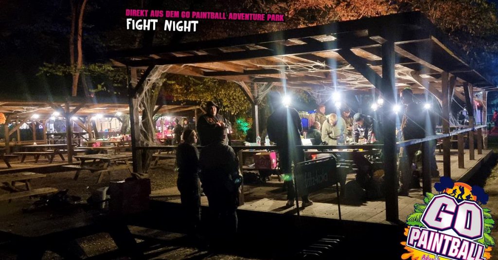 es ist wieder so weit für die FIGHT NIGHT, Paintball Spielen in der dunklen Nacht im Go Paintball Adventure Park. Das Team hat ganze Arbeit geleistet, um den Park gruselig zu schmücken und Halloween würdig zu feiern. Dazu ist der Park farbig beleuchtet und sorgt für Stimmung. Natürlich brennt das Lagerfeuer, um sich zwischen den Spielen aufzuwärmen und aufzuwärmen. Das Wetter meinte es gut mit uns.