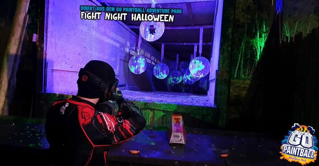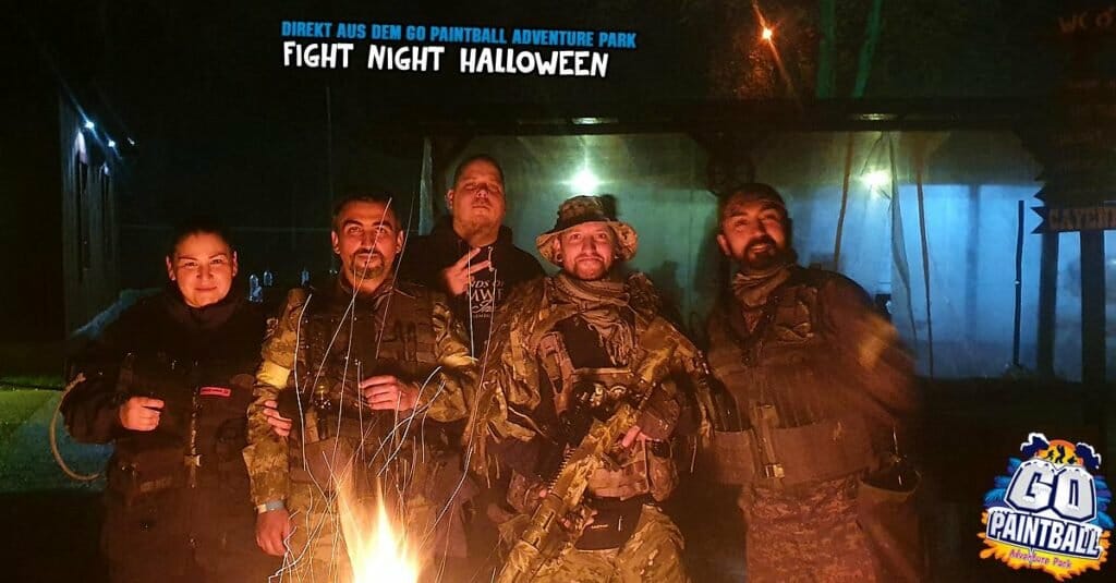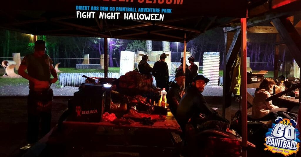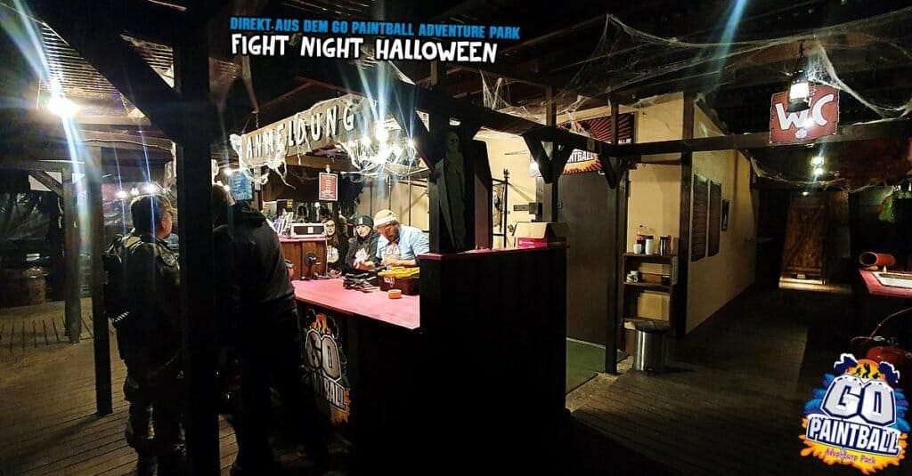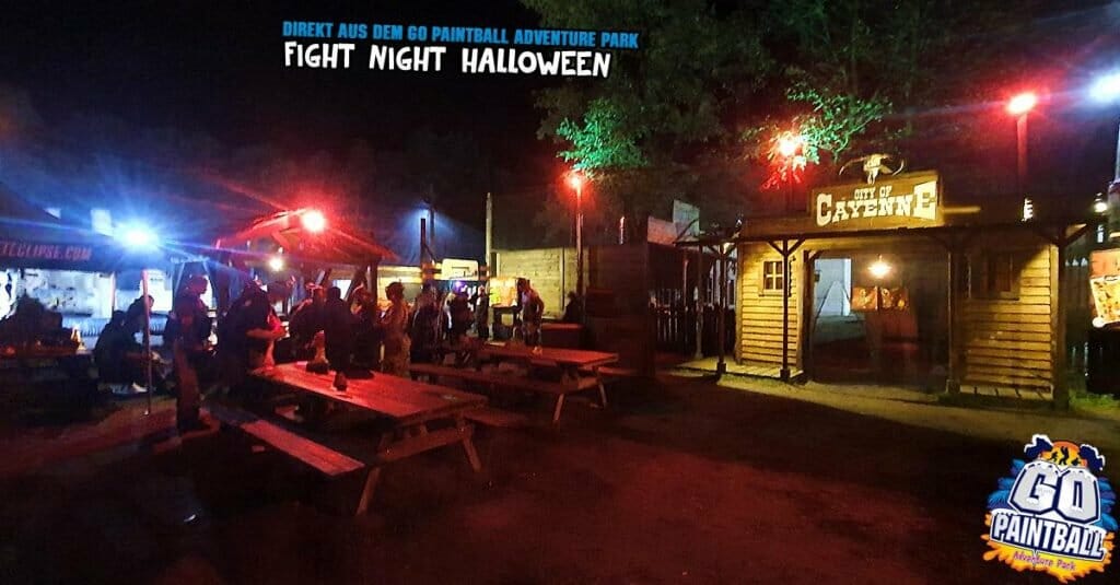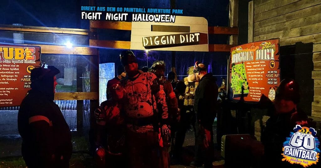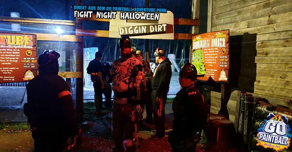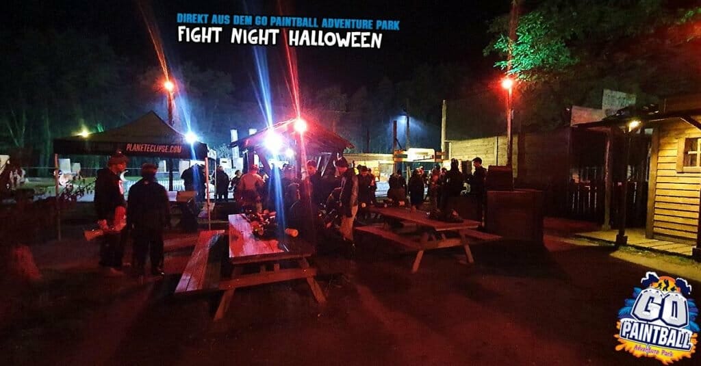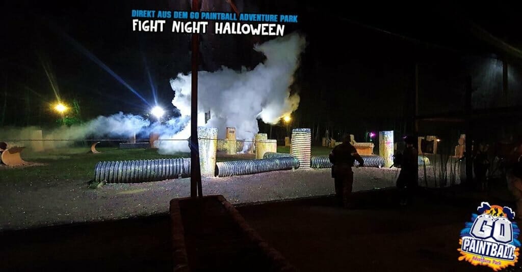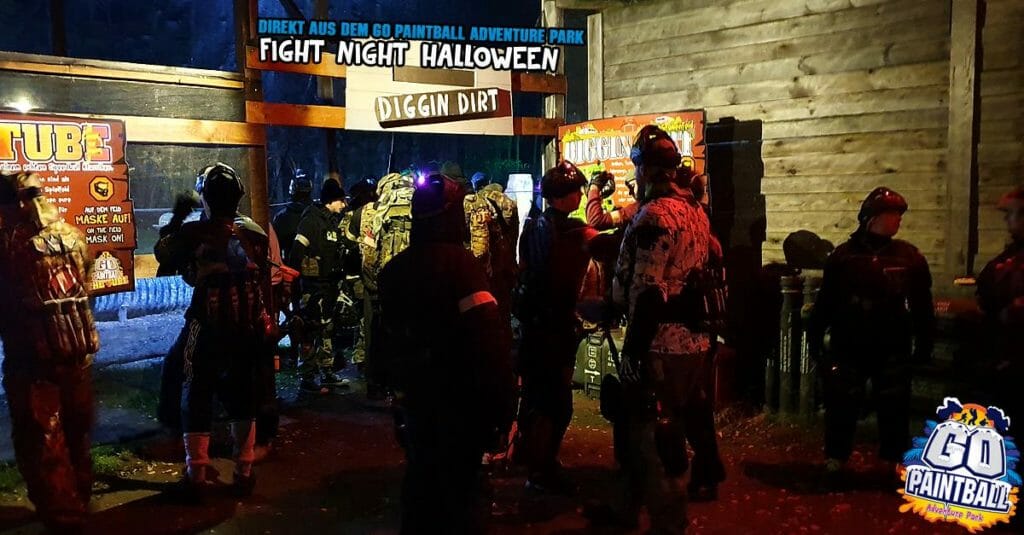 Ab 15 Uhr füllte sich der Park noch einmal ordentlich und man bereitete sich auf die Nachtspiele vor. Schnell noch bei Küchenchef Patrick im GO IMBISS den Halloween Burger verputzt und los kann es gehen. Auf DIGGIN DIRT wurde das erste Spiel mit Rückrunde gespielt, danach folgte THE TUBE und JUNGLE TRAIL. Die Gäste, die nicht an den geführten Spielen teilnehmen wollten, habe selbstständig das Spielfeld der Wahl bespielt. Ein Pärchen, das zum ersten Mal die Fight Night besuchte sagte: „Es sei Ihnen so gruselig bei Nacht zu spielen, trotzdem hatten Sie eine Menge Spaß!“