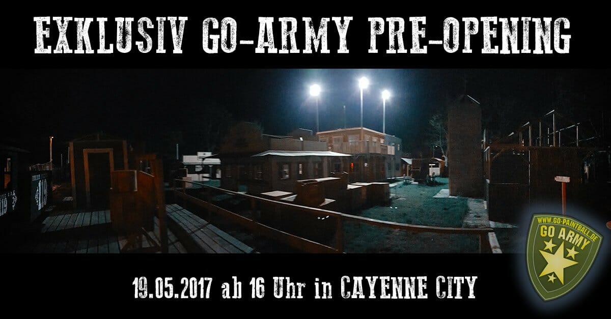 am 19.05.2017 wird das neue Spielfeld CAYENNE im GO PAINTBALL ADVENTURE PARK eröffnet. Alle Mitglieder der GO ARMY sind exklusiv und herzlich dazu eingeladen. Eingeladen bedeutet, dass das Tagesticket und die Luftpauschale kostenlos, gratis oder auch umsonst ist.