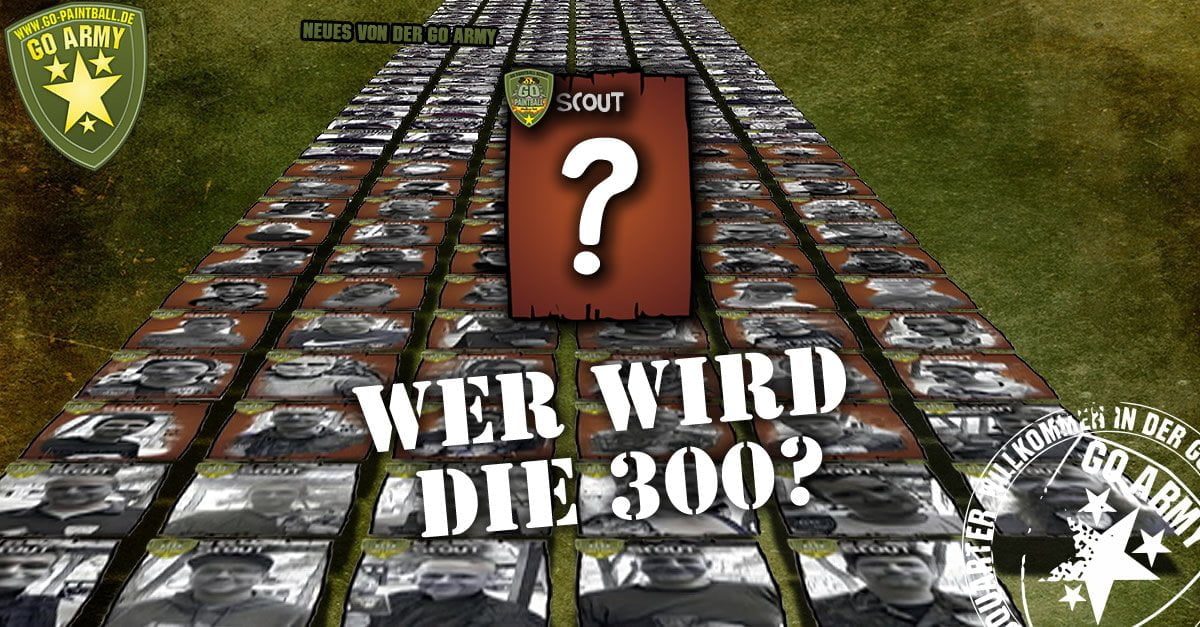 Wer aber wird unser 300ster Scout? Am Wochenende haben sich wieder eine Menge Gäste angemeldet und das Rekrutierungsbüro der GO ARMY schaut sich sehr genau die neuen Anwärter an. Der oder die 300ste Rekrut/in erhält einen Tagesticket mit 500 Paintballs für den nächsten Besuch gratis. Wir sind gespannt…