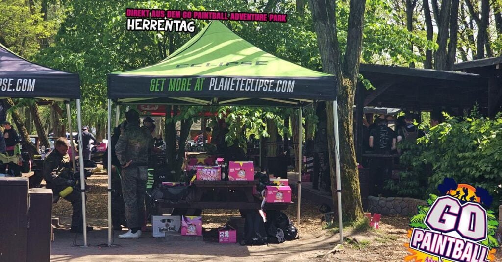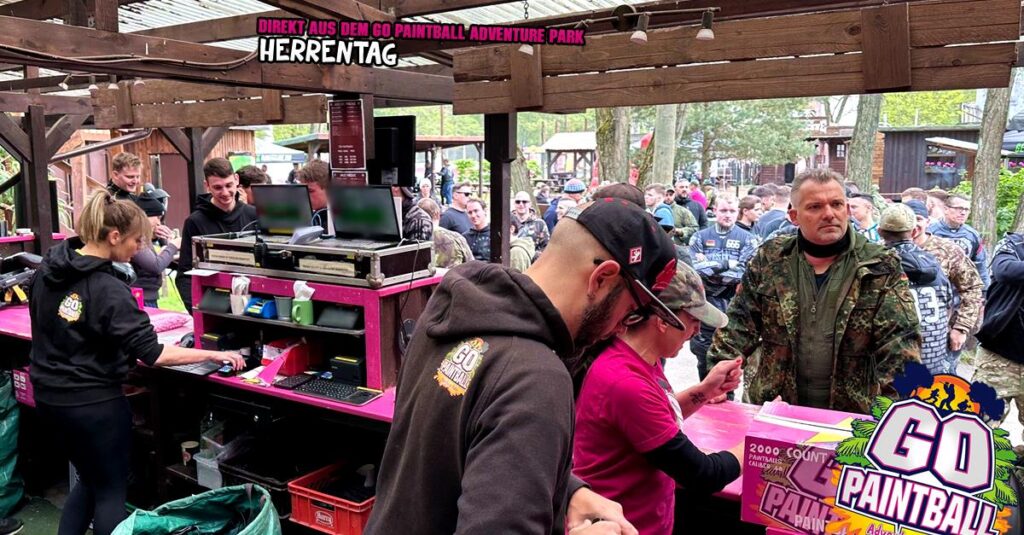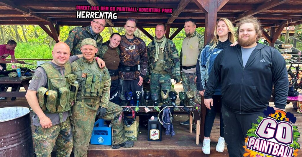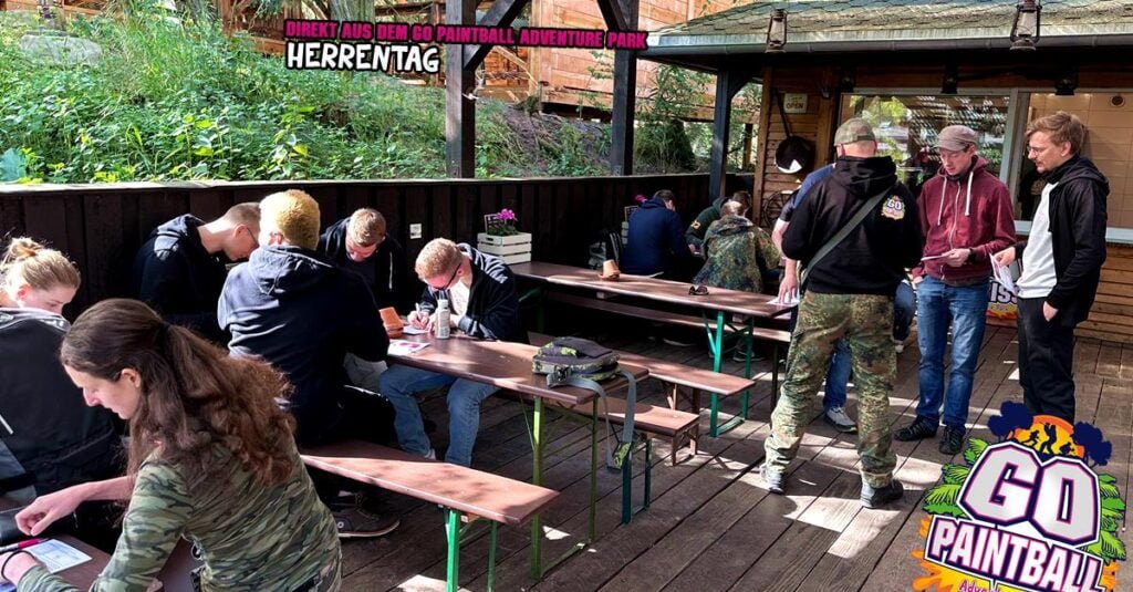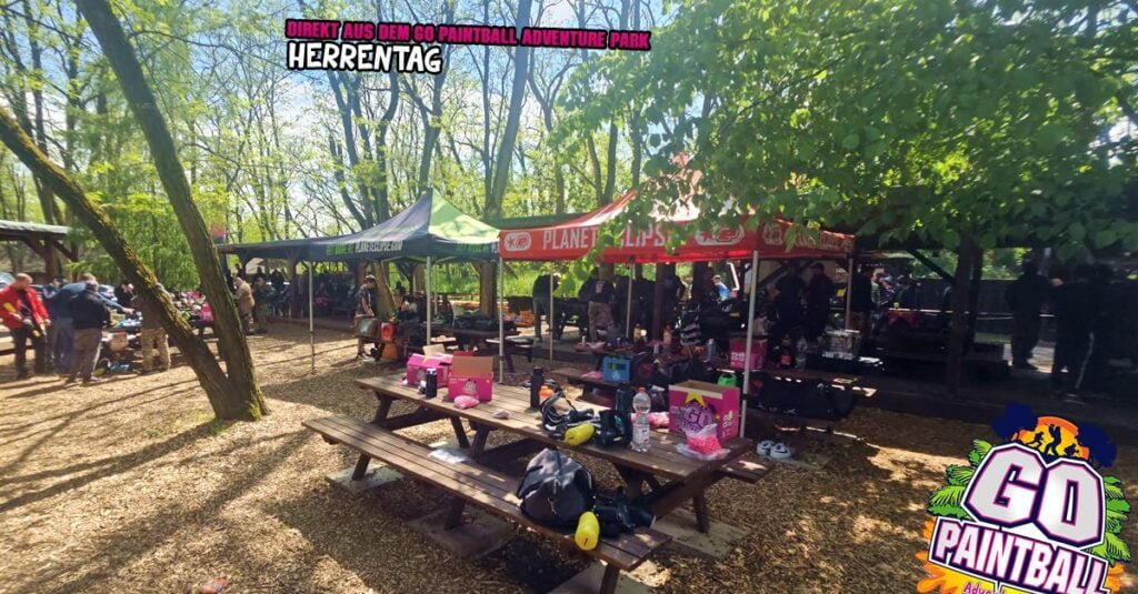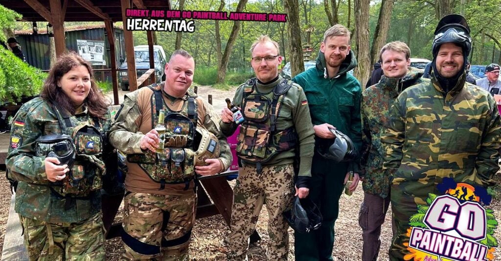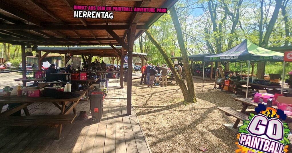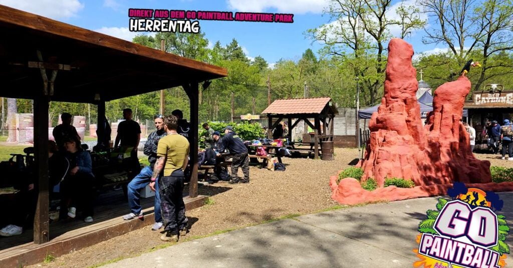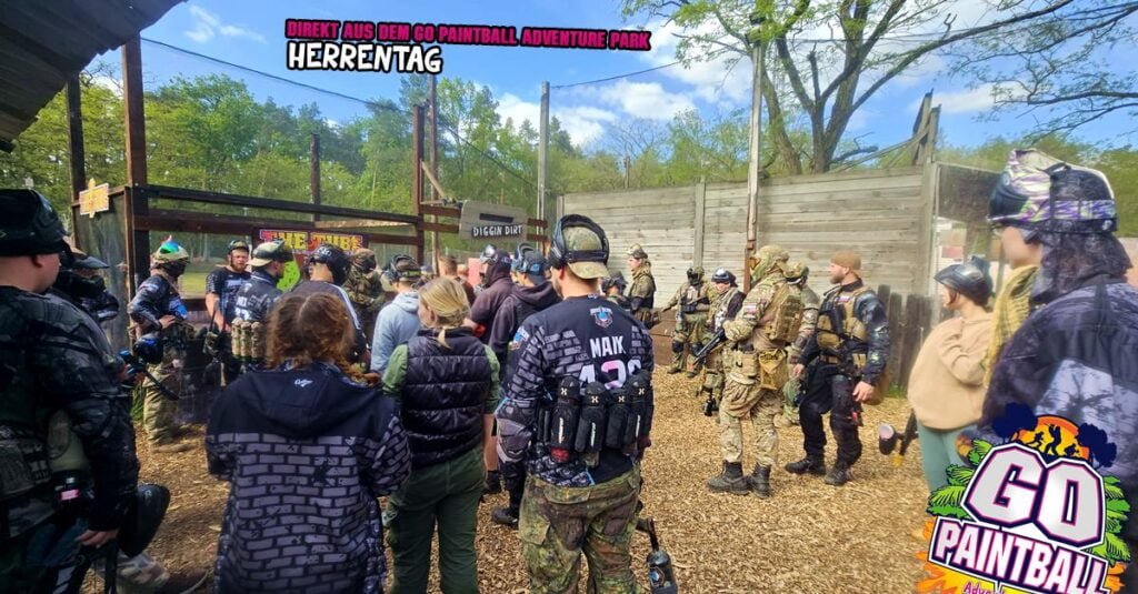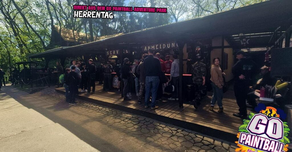 Der Herrentag steht im GO PAINTBALL ADVENTURE PARK an, und das bei perfektem Paintball-Wetter! Die Sonne scheint, es ist nicht zu heiß und nicht zu kalt, und am wichtigsten: Es bleibt trocken – kein Regen in Sicht. Das ist einfach fantastisch!