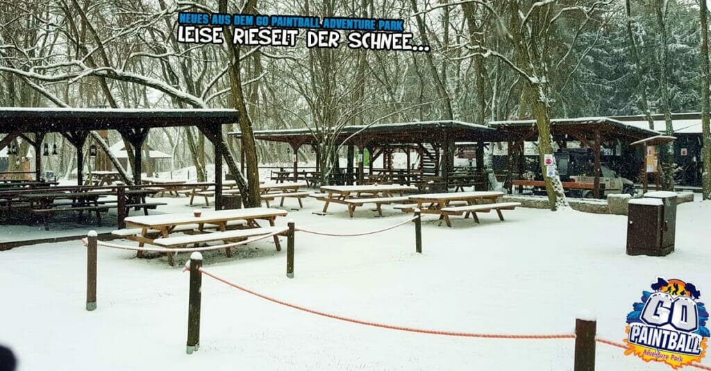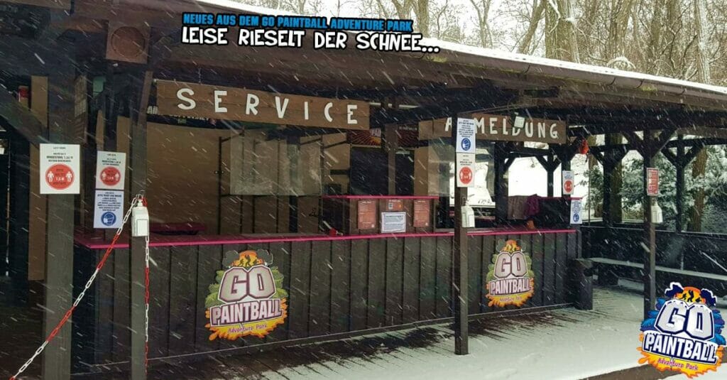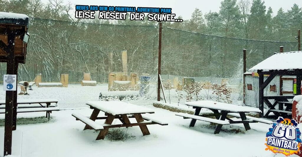 wir wünschen ein frohes neues Jahr! Es hat endlich mal geschneit. Der Go Paintball Adventure Park liegt friedlich unter einer weißen Decke. Es wäre heute sicherlich ein geiler Spieltag geworden, aber das geht ja im Moment noch nicht. Sehr schade. Wir wünschen euch jedenfalls einen guten Start in die neue Woche, ins neue Jahr.