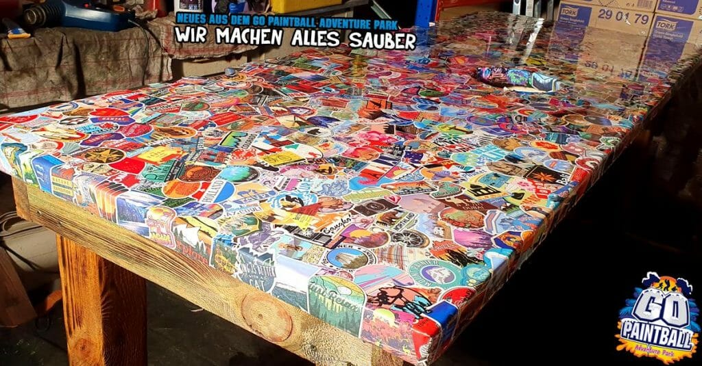 Wir haben für die Ladies den Waschtisch des Damen-WC beschichtet. Jetzt ist die Oberfläche spiegelglatt, wasserdicht und alle Aufkleber (ca. 800Stk) sind sicher versiegelt.