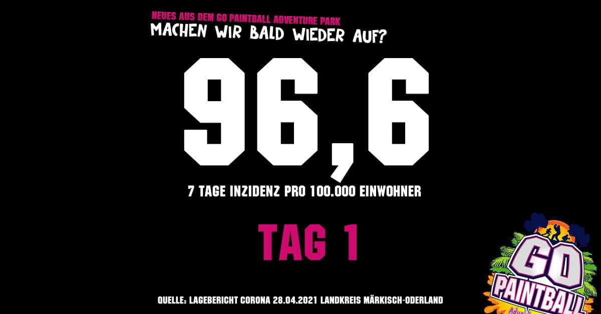 eine frohe Nachricht erreichte uns heute Mittag vom Landkreis MOL. Im schönen Märkisch-Oderland liegt der GO Paintball Adventure Park. Die Inzidenz liegt hier jetzt wieder unter 100, genauer bei 96,6 (laut RKI). Sollte in den nächsten 5 Tagen dieser Wert weiter sinken und nicht mehr die 100er Marke überschreiten so könnten wir theoretisch ab Montag wieder öffnen. Wir werden also ab sofort jeden Tag die Daumen drücken, dass wir ab Mai wieder für euch da sind. Zeit wird es ja.