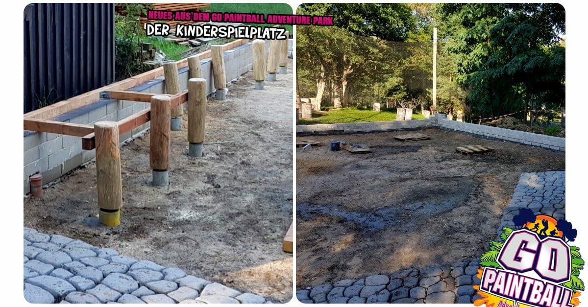 nachdem die Einfassungsmauer fast fertig ist, konnte an anderer Stelle bereits mit den ersten Holzkonstruktionen begonnen werden. Nächste Woche wird das Spielgerüst endlich aufgestellt. Trotzdem wartet noch eine Menge Arbeit bevor losgespielt werden kann.