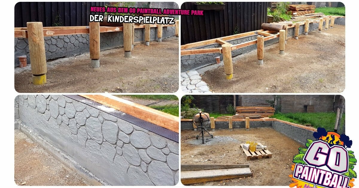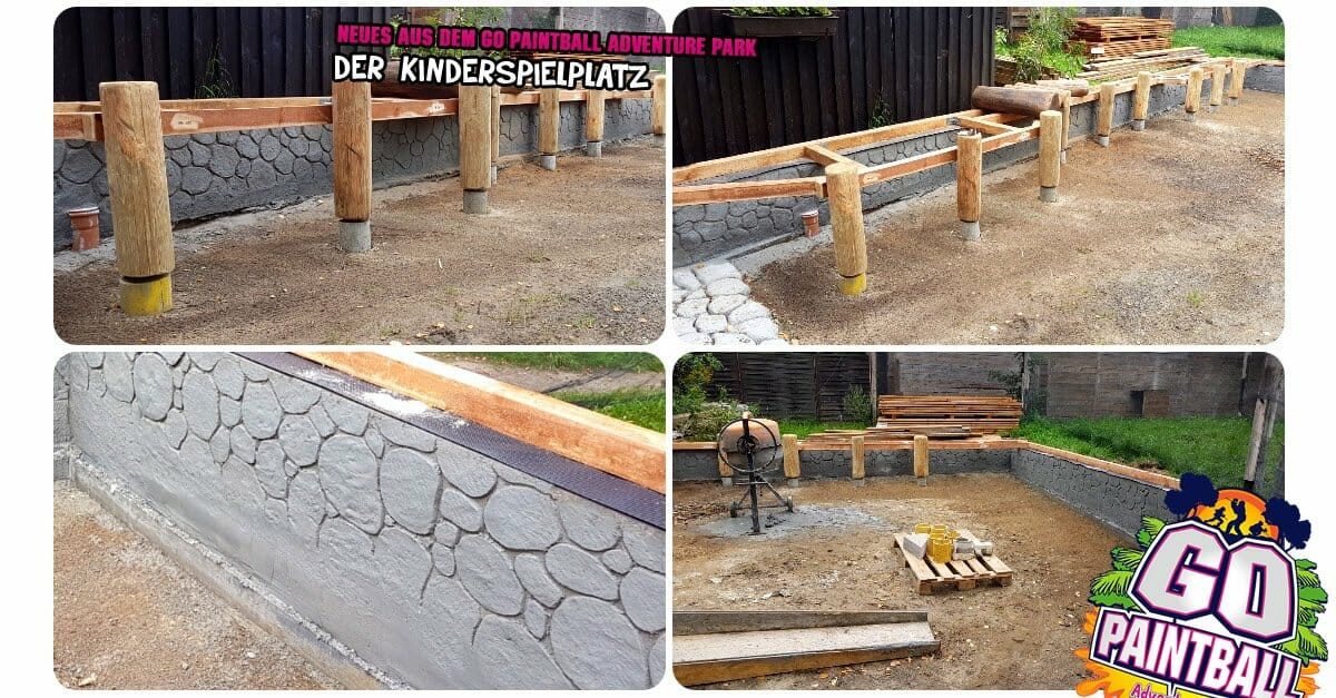 es geht stetig weiter auf dem Spielplatz. Die Mauer ist nun fertig und wir haben mit der Einfassung begonnen. Dabei ist uns aufgefallen, dass die Mauer nicht schön genug ist und diese dann noch einmal verputzt und einer Steinoptik versehen. Es wird langsam. Was macht man nicht alles für die Kids…
