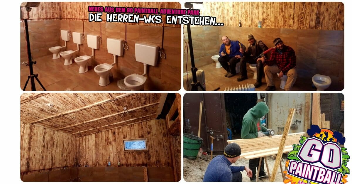 was gibt es neues vom Ausbau der Herren-WCs? Der Innenausbau ist angesagt. Trennwände werden eingezogen, das Waschbecken montiert, Rohre verlegt und natürlich alles schön gestrichen. Wir haben für euch ein paar Bilder von der Baustelle eingestellt.