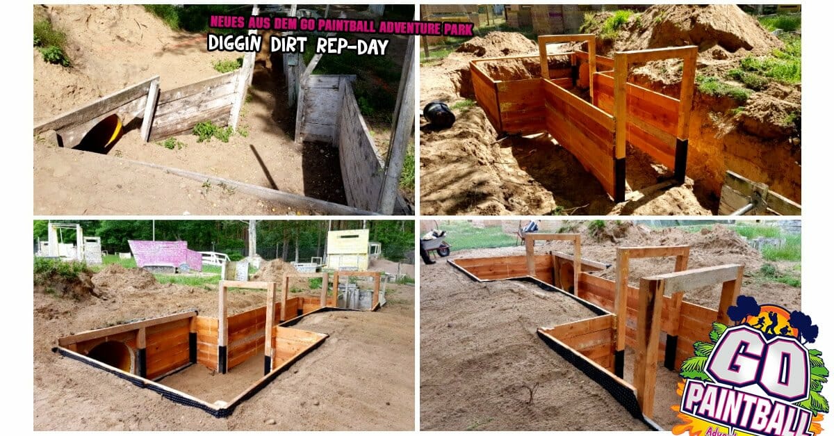 trotz Regen und Zeitdruck haben Maik und Robert es geschafft. Diggin Dirt kann ab sofort wieder bespielt werden. Der renovierte Bereich wurde nach unseren neusten Erkenntnissen gebaut und ist besonders haltbar und robust. Was sagt ihr? Sieht doch ganz gut aus…