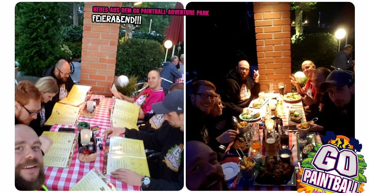 nach einem langen und aufregenden Arbeitstag kehrt das Team in der Gaststätte ein, um den Tag bei einem leckeren Abendessen abzuschließen. Guten Appetit und Prost!