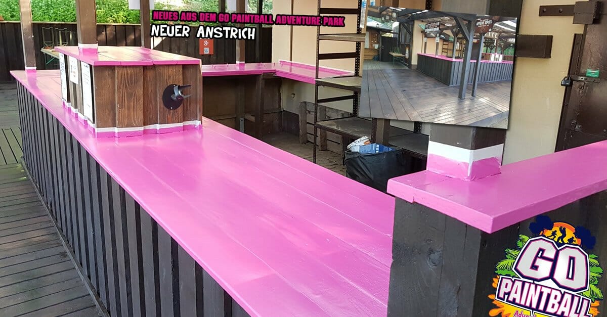 der alte Tresen hat im Laufe der Jahre ordentlich gelitten und so haben wir das gute Stück Holz einmal ordentlich abgeschliffen, gespachtelt und in unserem „Magenta-Fuchsia-Rasberry“-Farbton angestrichen und dick mit Bootslack konserviert. Ebenfalls wurde auch die Verkleidung und der Fußboden wieder neu gestrichen und schön gemacht. Ist doch ganz gut geworden, oder?