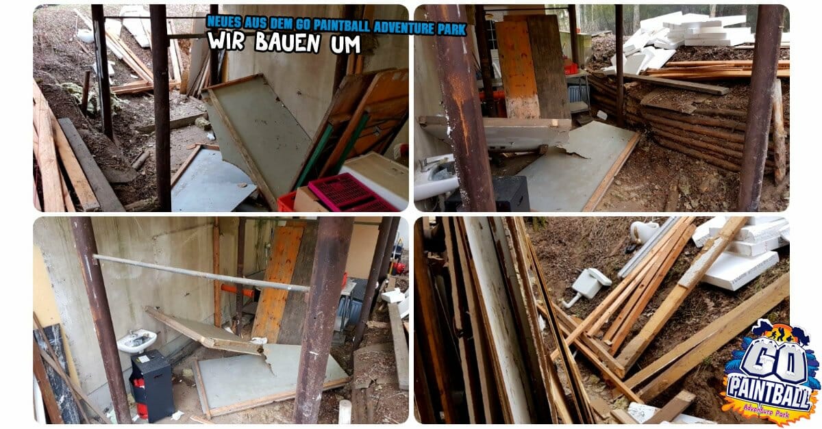 wir bauen die Toiletten um, endlich. Es ist vollbracht und die hässliche Männer-Toilette ist unter die Abrissbirne gekommen. Dach runter, Steine raus, Holz verbrennen, Strom und Wasser ab und jetzt ist Platz für den Bagger. Nächste Woche wird das Fundament ausgehoben und dann alles betoniert für die neue 5 Sterne Pinkel-Bude. Wir halten euch auf jeden Fall auf dem Laufenden. Nach anstregender Bauarbeit hat das Bauteam jetzt erst einmal Wochenende und die Paintball-Action kann losgehen.