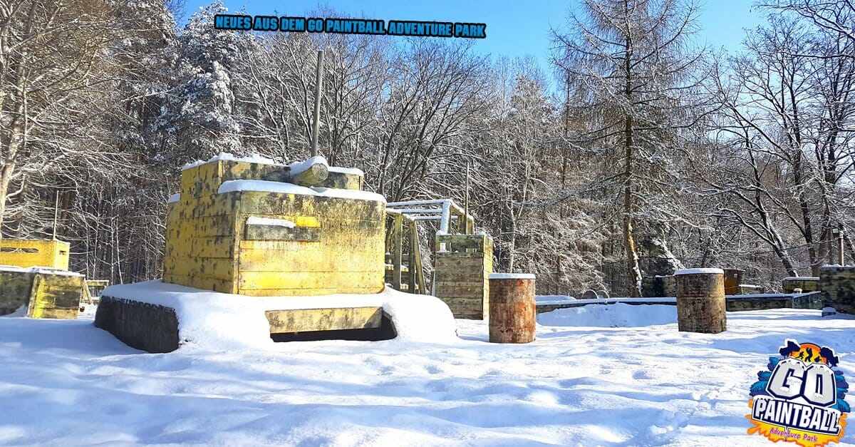 Schnee auf Diggin Dirt im GO PAINTBALL ADVENTURE PARK.