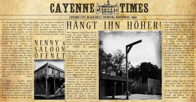 Cayenne Times ist eine fiktive Zeitung und berichtet aus der Stadt Cayenne. Sie beschreibt das Leben der Bürger rund um den Eisenbahnbau im Jahr 1869. Die Zeitung war ursprünglich dazu gedacht, unsere Gäste über den Fortschritt der Bauarbeiten auf dem neuen Spielfeld im GO PAINTBALL ADVENMTURE PARK zu informieren.