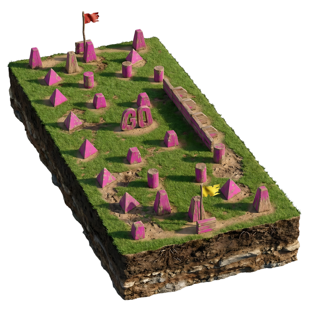 Wir empfehlen dieses Spielfeld für Gruppengrößen zwischen 2 und 12 Spieler. Natürlich könnt ihr auch ein 1 gegen 1 oder mit noch größeren Gruppen dort spielen.