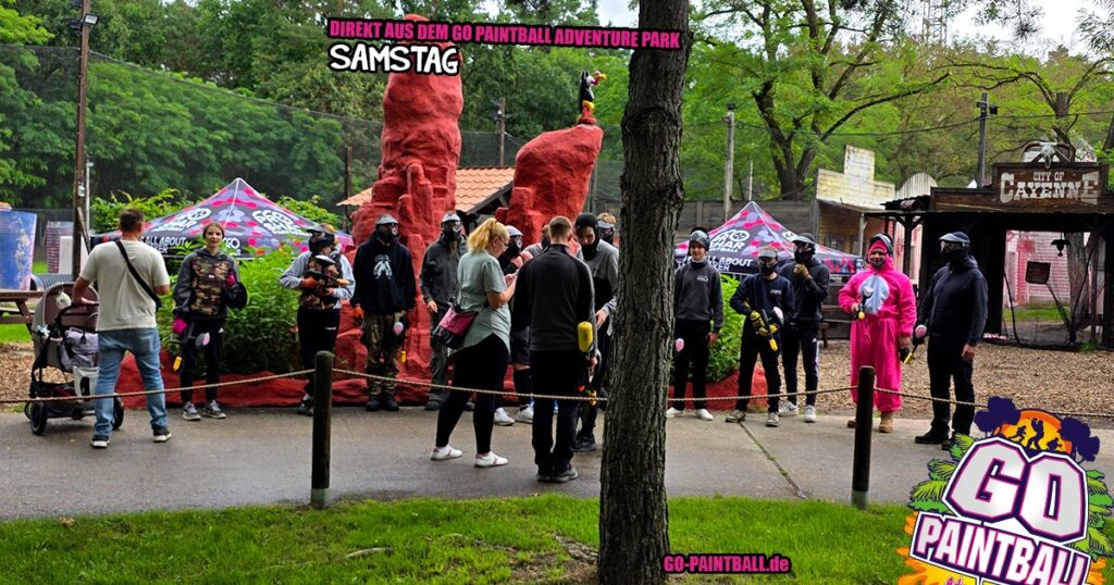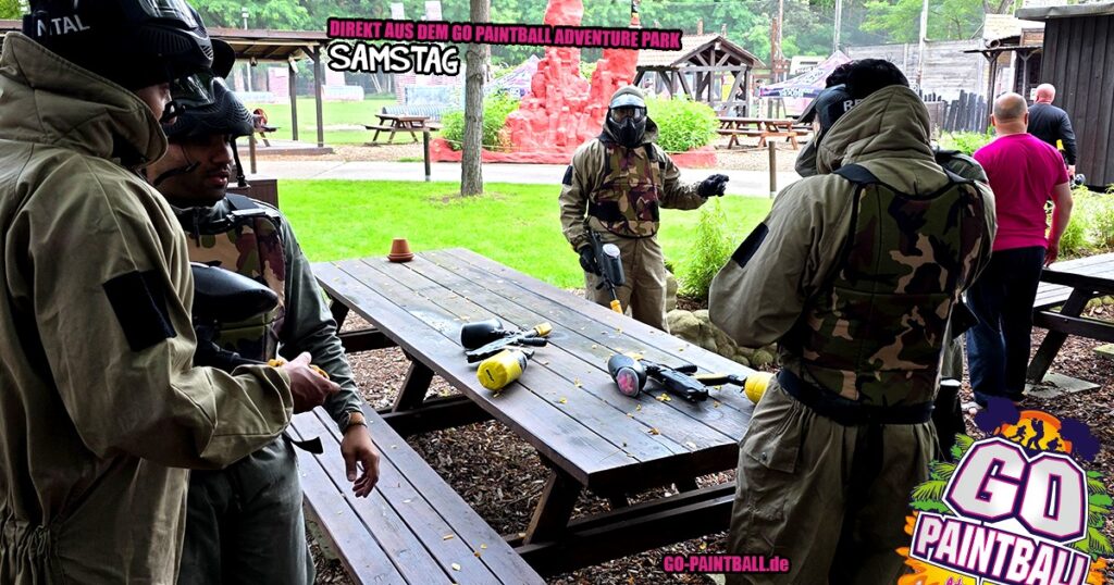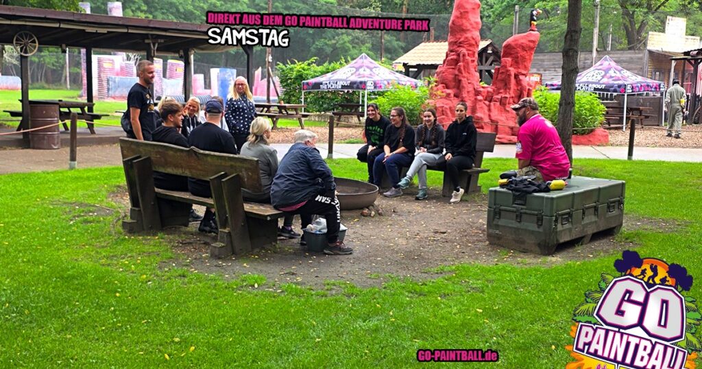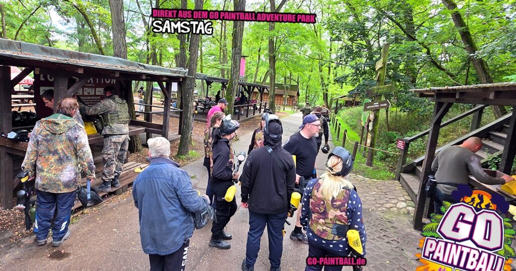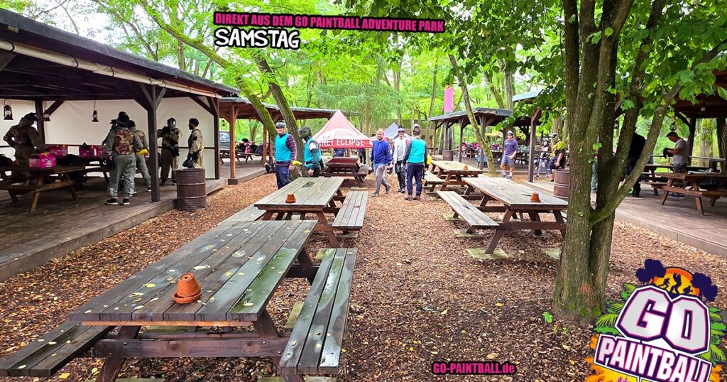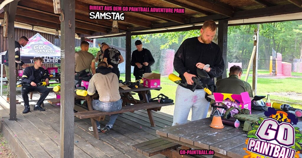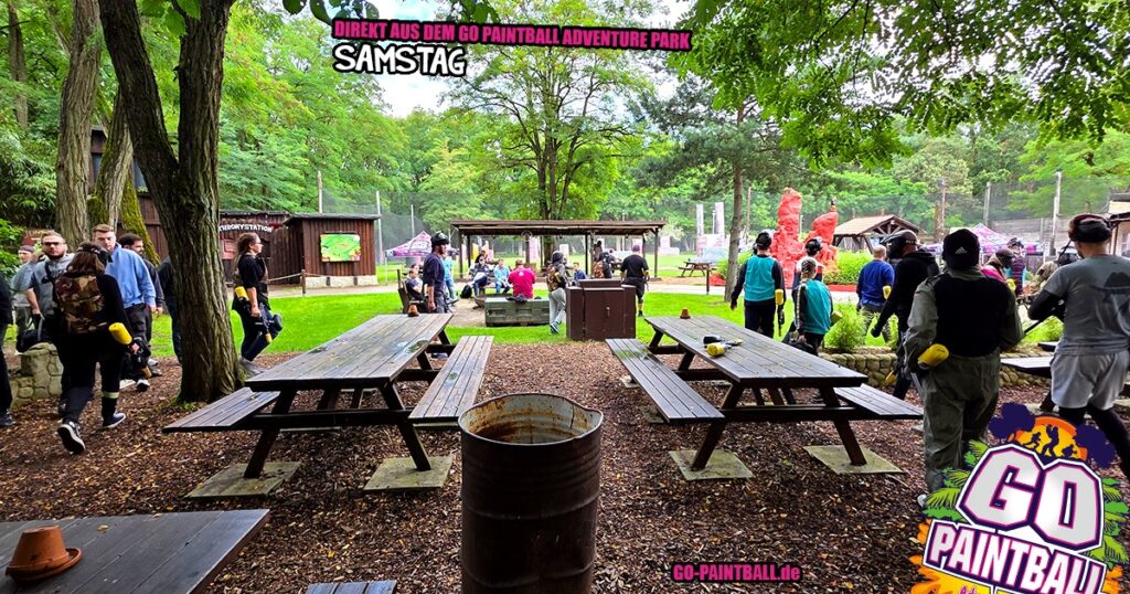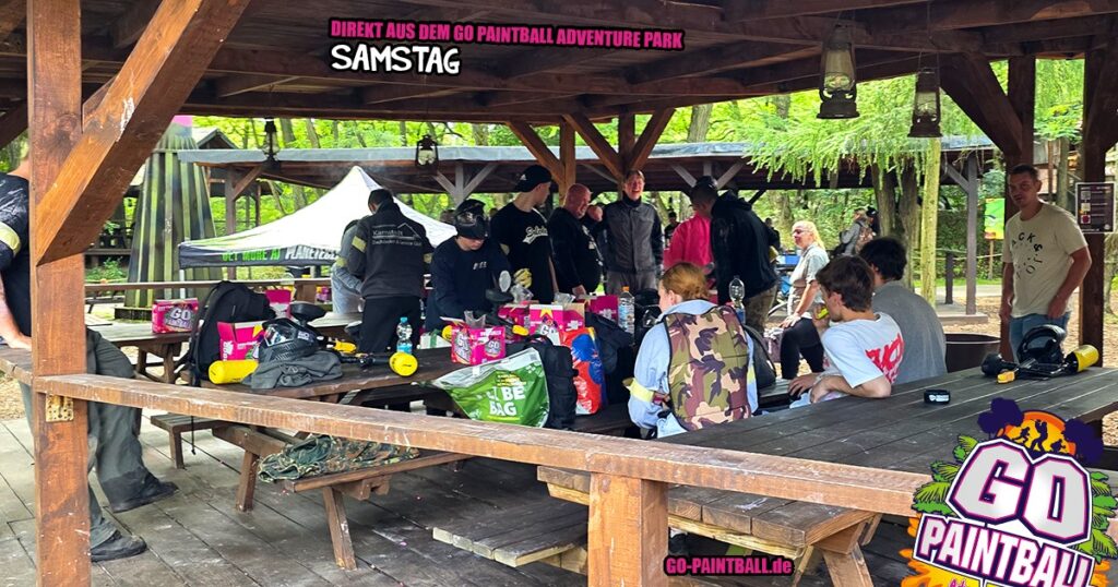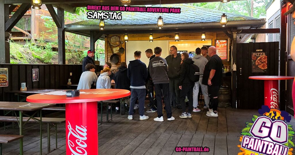 Mitten in der Ferienzeit war heute ordentlich was los im Park. Die Felder voll, die Stimmung laut, die Farben knallig! Zwischen zwei Adrenalin-Kicks auf dem Spielfeld gab’s natürlich auch Zeit für eine wohlverdiente Pause: Burger, Pizza, kalte Drinks – GO Paintball Style eben. 😎🍕🍔
