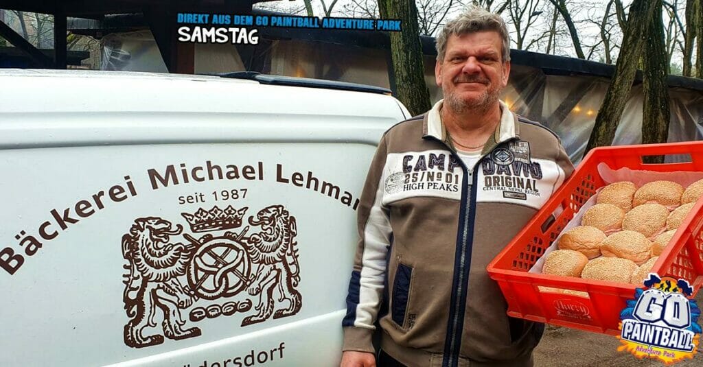 Auf dem Foto sehen wir Michael unseren Bäcker aus Rüdersdorf, der die ofenfrischen GO-Bürger Brötchen bringt. Ja, wir stellen in der Region noch selber her. Frischer geht es nicht und schont natürlich auch die Umwelt! „Zwincker, zwincker!“