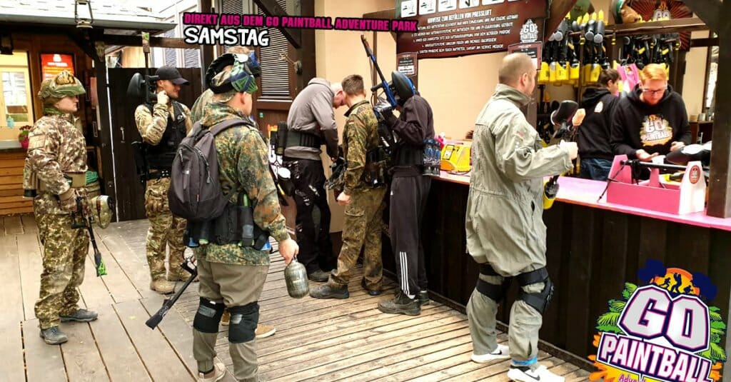 Paintball-Action am 07. September im Go Paintball Adventure Park ist heute das Thema. In der einen Ecke sehen wir den Herausforderer: mehrere Paletten Paintballs! In der anderen Ecke ausgelassene Gäste, die mal ordentlich was verballern möchten und erleben möchten. Die Sieger standen nach einem langen Tag endlich fest, die Gäste. Verlierer waren die vielen, vielen Kisten Paintballs. Der Preis war ein geiler Tag mit viel Action, Adrenalin und vor allem und das ist das Beste eine gute Zeit mit den Freunden…