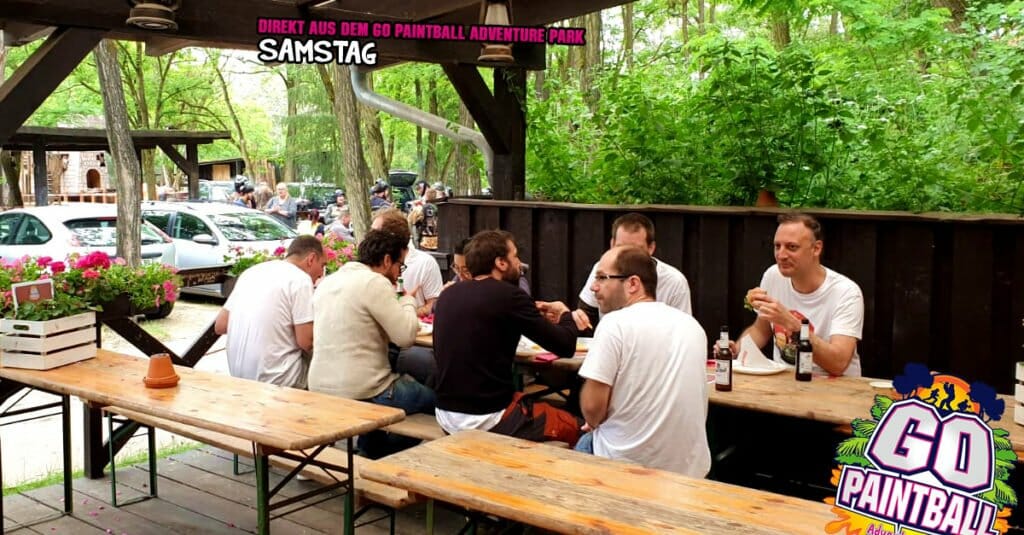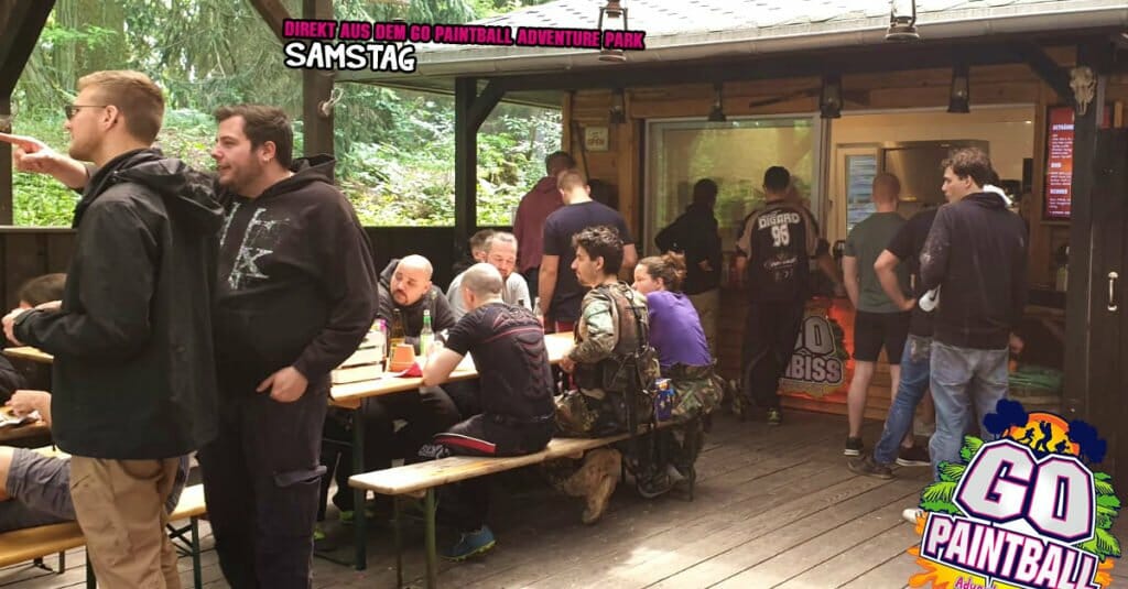 mit knapp über 22 Grad und Sonne kann der Tag eigentlich für Paintball nicht schöner sein. Unsere Gäste haben sichtlich Spaß aus ihren Markierern Farbe in alle Richtungen zu verteilen, am besten allerdings immer in Richtung von Freund und Feind. Das Team steht bereit, um bei Problemen schnell und unkompliziert zu helfen. Wir alle wollen Spaß haben und uns nicht ärgern, dass ist unser Motto. Der GO IMBISS mit Küchenchef Patrick sorgt dafür, dass auch der Bauch gut gefüllt ist und weder Durst noch Hunger aufkommen. Mit leeren Magen lässt sich bekanntlich nur schlecht kämpfen.