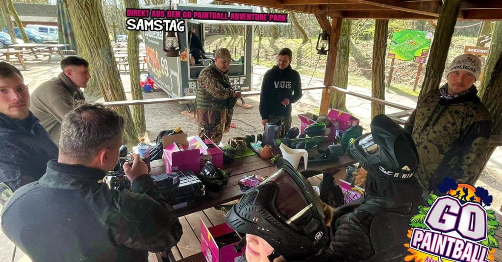 mit deutlich besserem Wetter konnte heute der Park in das Paintball Wochenende Nr. 2 im April starten. Mit am Start ist gute Laune, tolle Gäste, frische Paintballs und Pommes vom Foodtruck. Von Geburtstagsfeier bis Junggesellenabschied konnte heute alles gefeiert werden, da bedeutet natürlich Hasenjagd war ebenfalls angesagt. Das Team war natürlich wieder unterwegs, um technische Probleme zu lösen und den Park sauber zu halten. Es gibt ja fast nichts Schlimmeres, als ständig in herunter gefallene Paintballs zu treten, die dann am besten noch bis ins Auge spritzen. Damit das nicht passieren kann, wird überall Paint gesammelt. Man will sich eben wohl fühlen.