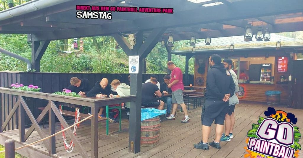 Paintball ist angesagt! Paintball im GO PAINTBALL ADVENTURE PARK macht die Welt schön bunt und sorgt für eine willkommene Auszeit vom grauen und nervigen Alltag, oder?! Das Team steht bereit, um euch einen tollen Tag zu bereiten. Im GO IMBISS braten die Burger auf dem Grill, Würsten werden lecker braun und knusprig und die Getränke werden schön kalt im Kühlschrank für eine oder zwei Pausen zwischen den Spielen. Natürlich haben wir auch wieder ein paar Fotos für das Erinnerungs-Album gemacht!