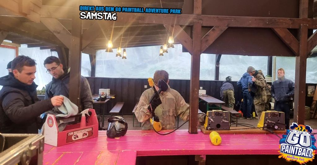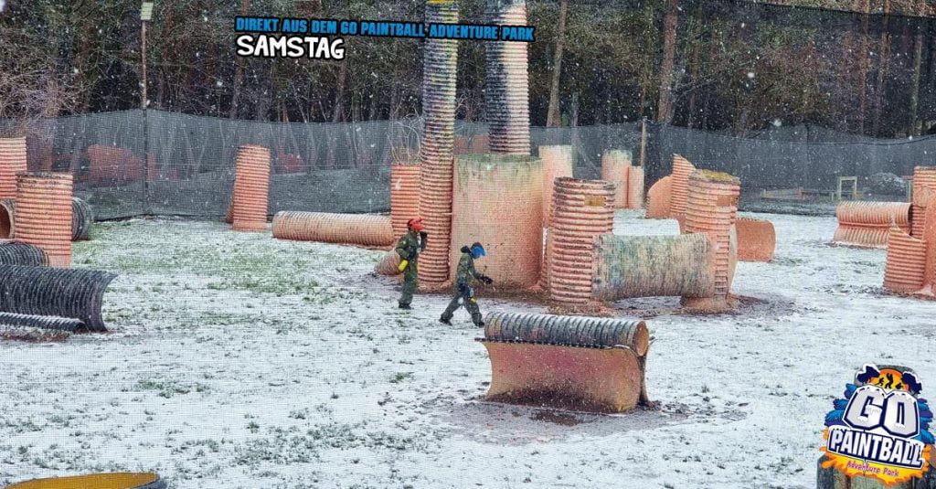 wir sagen „Hallo“ an alle Winter-Paintballer! Bei knapp unter null Grad liegt der Park unter einer feinen Schicht Eis und Schnee. Das Lagerfeuer brennt und sorgt für ein kleines bisschen Wärme. Ab Mittag fing es dann auch noch zu schneien an und sorgte für noch mehr „Stimmung“ auf den Spielfeldern. Wir haben für euch wieder ein paar Bilder geschossen und bedanken uns für euren Besuch bei uns. Danke dafür. Kommt gut nach Hause und besucht und bald wieder.