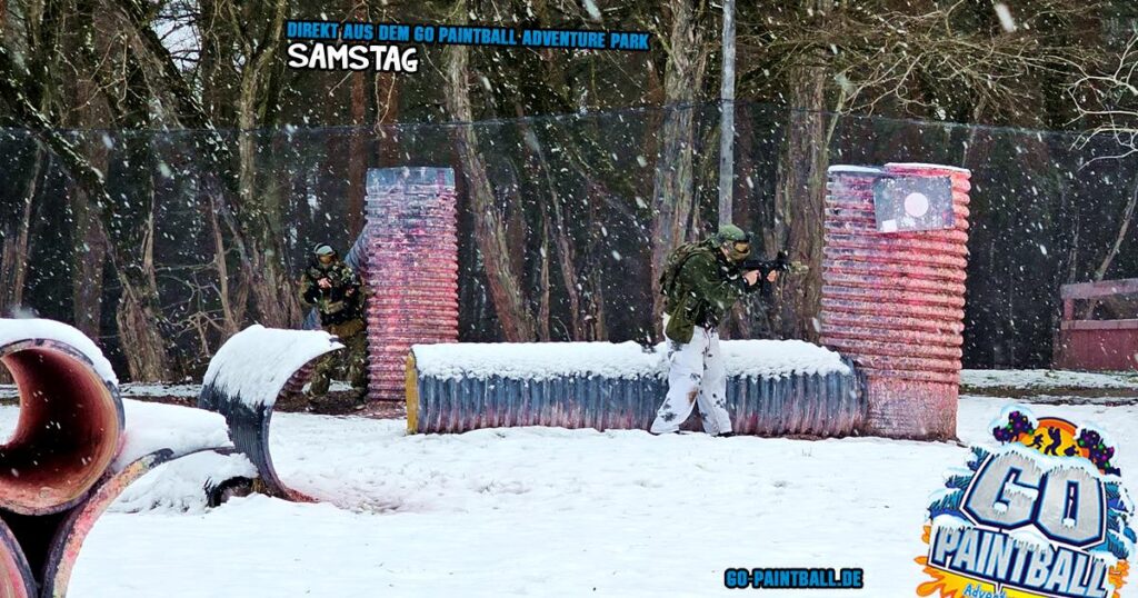 es hat geschneit, und der Schnee begleitete uns den ganzen Tag – doch das hielt unsere Gäste nicht auf! Nicht nur Spieler mit eigener Ausrüstung haben das winterliche Wetter genossen, auch viele junge und ältere Leihspieler waren begeistert. Ganz nach dem Motto: „Das Wetter spielt keine Rolle!“ erlebten alle den schneebedeckten GO Paintball Adventure Park in einem völlig neuen Szenario. Die Spielfelder, bedeckt mit einer frischen Schneeschicht, boten ein einzigartiges Spielgefühl. Das muss man einfach mal erlebt haben!