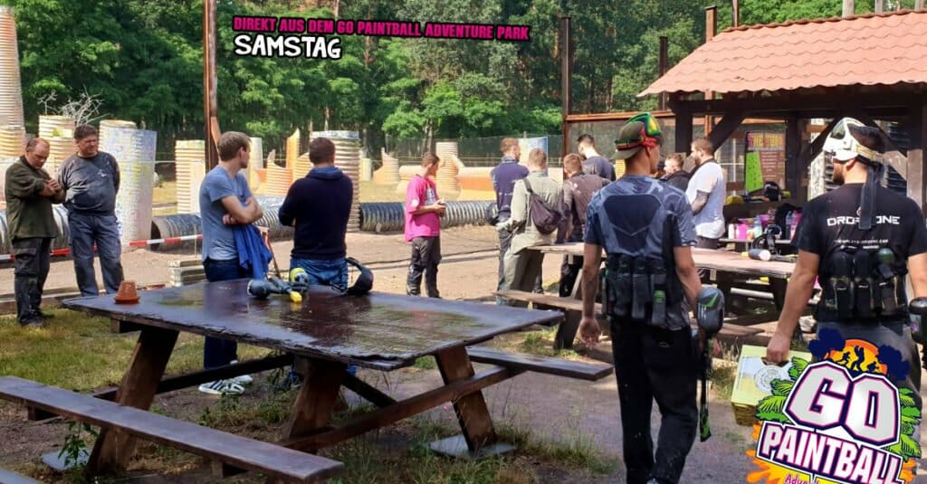 was für ein schöner Tag. Heute war so einiges los im GO PAINTBALL ADVENTURE PARK. Morgens bei Patrick erst ein schönes GO-Frühstück, dann Paintball, dann ein GO-Burger und zum Nachtisch einen GO-Lutscher und wieder Paintball. So war der Plan, aber von Hasenjagd bis zur Verlobung von Sophia & Francis gab es heute noch mehr zu erleben. Auch das Wetter hatte von Sonnenschein bis Regen und wieder Sonnenschein alles am Start für unsere Gäste. Es sind also kaum Wünsche unerfüllt geblieben und für genug Action war über den Tag hinweg gesorgt.