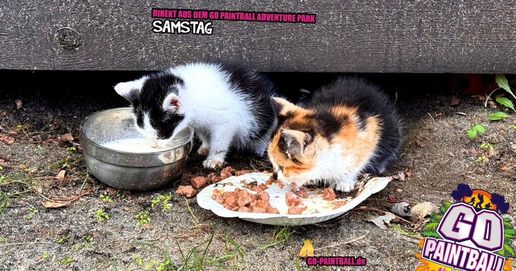 Unsere tierischen Mitbewohner – die Katzen vom Park – haben es sich im Schatten gemütlich gemacht. 🐱 Für Nachschub an Katzenfutter ist gesorgt, und sobald die Kleinen etwas älter und zutraulicher sind, kümmern wir uns natürlich auch medizinisch um sie. Versprochen!