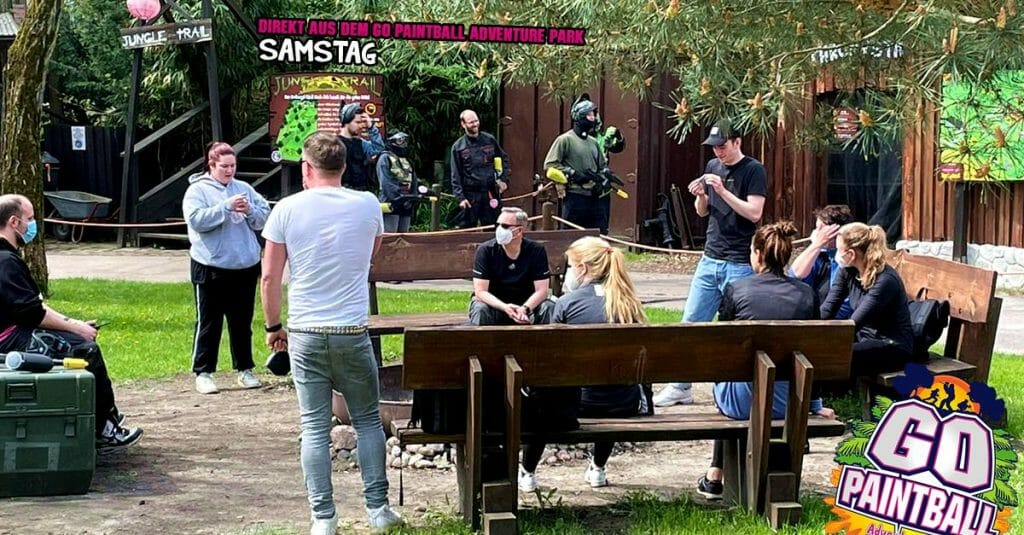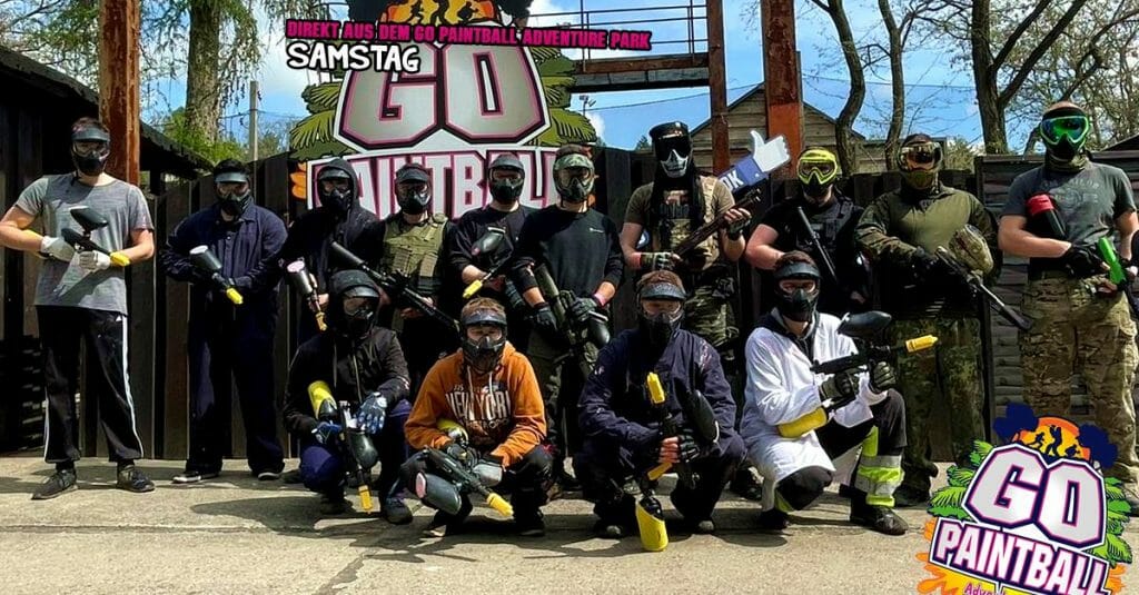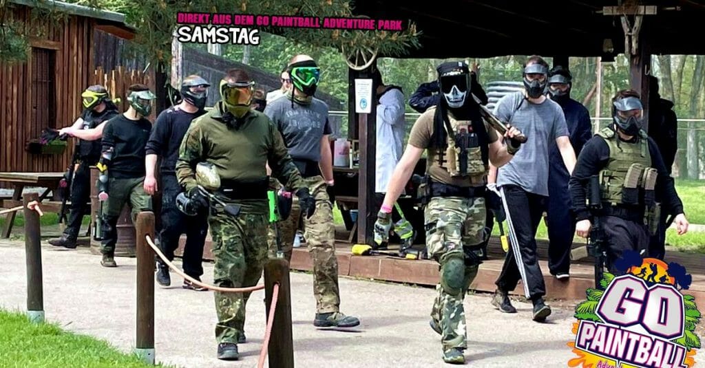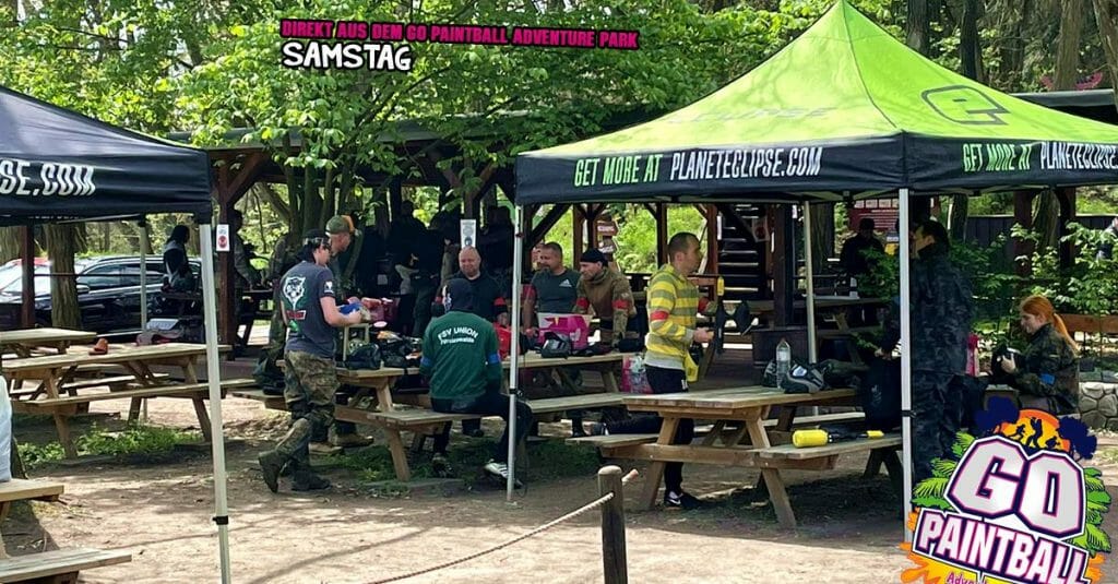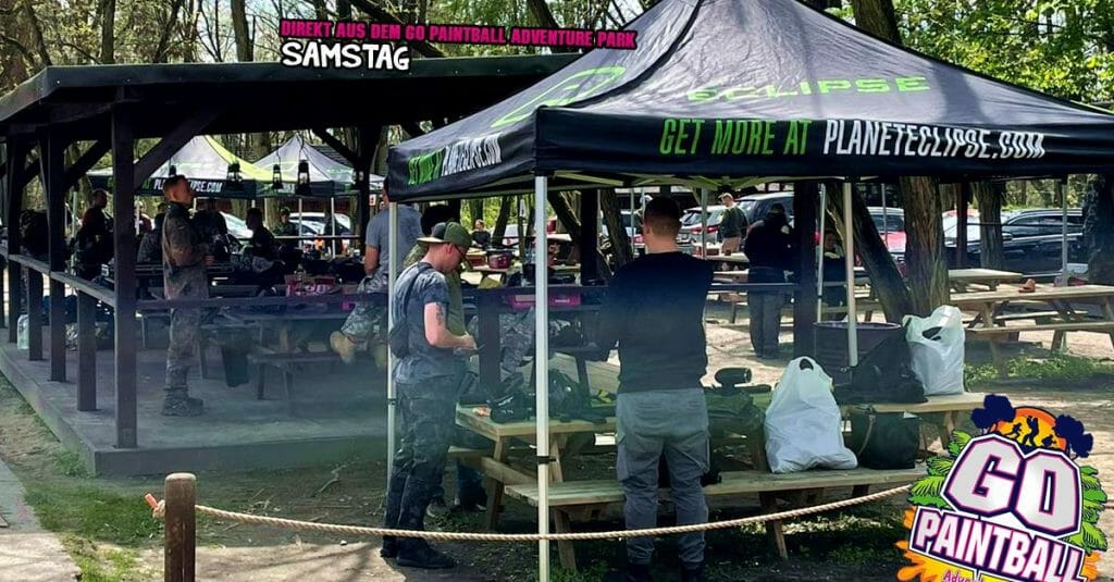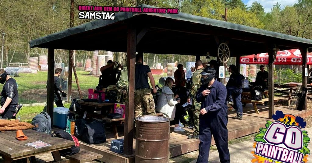 ein geiler Tag mit feinstem Wetter. Besser geht es nicht nach dem regnerischen Herrentag. Der Park ist an diesem schönen Samstag gut gefüllt und von allen Spielfeldern hört man fröhliche Rufe und das geliebte „Paintball-Knattern“!